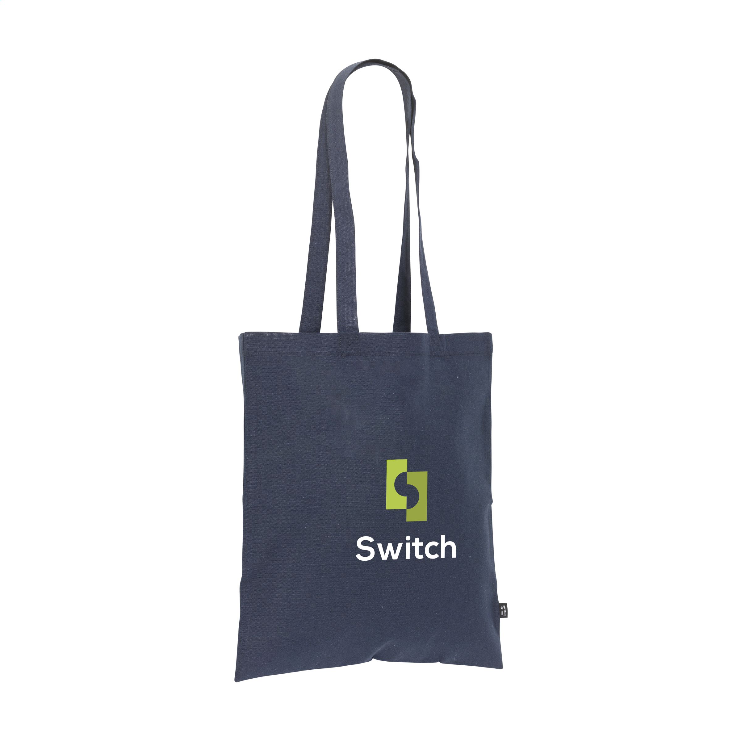 WoW! Einkaufstasche mit langen Griffen aus 80% recycelter Baumwolle und 20% recyceltem Polyester (150 g / m²). GRS-zertifiziert. Recyceltes Material insgesamt: 100%.
