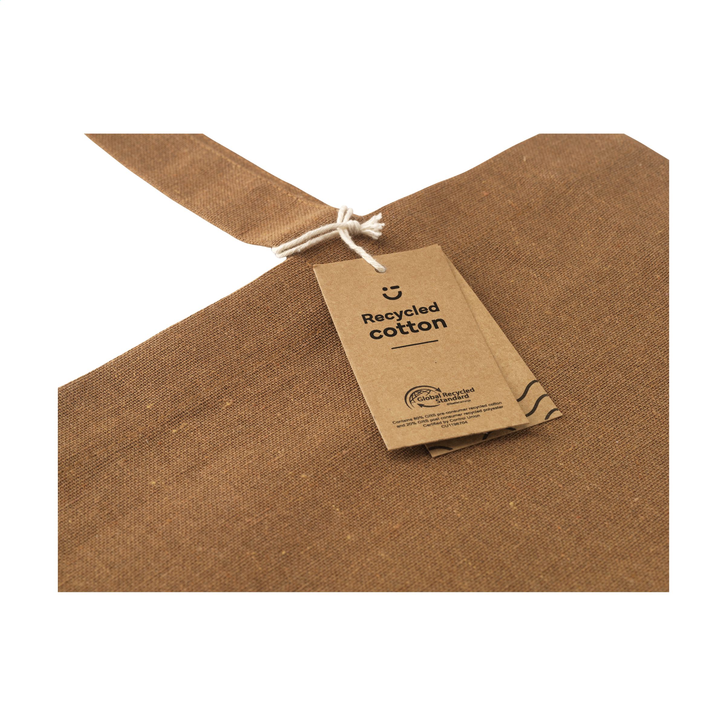 WoW! Einkaufstasche mit langen Griffen aus 80% recycelter Baumwolle und 20% recyceltem Polyester (150 g / m²). GRS-zertifiziert. Recyceltes Material insgesamt: 100%.