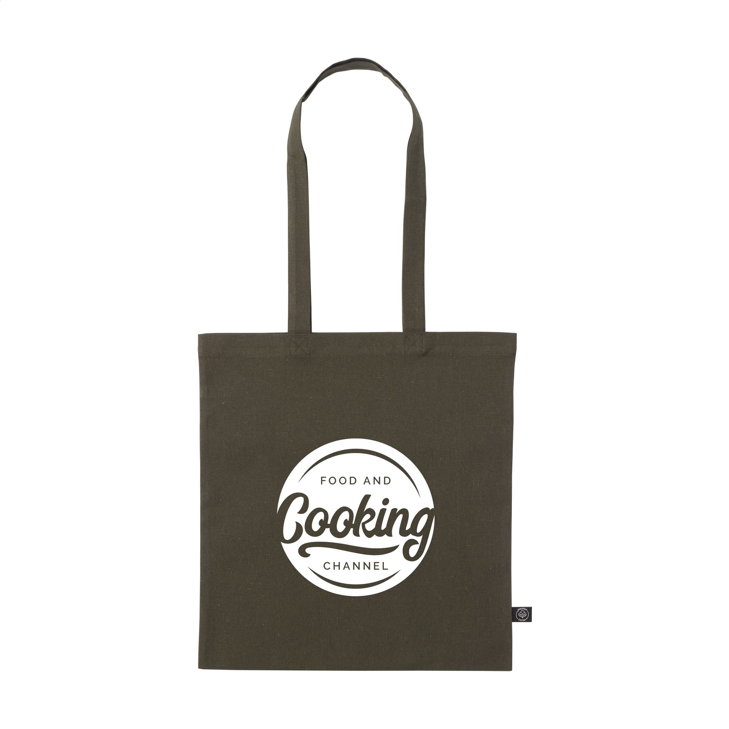 WoW! Einkaufstasche mit langen Griffen aus 80% recycelter Baumwolle und 20% recyceltem Polyester (150 g / m²). GRS-zertifiziert. Recyceltes Material insgesamt: 100%.