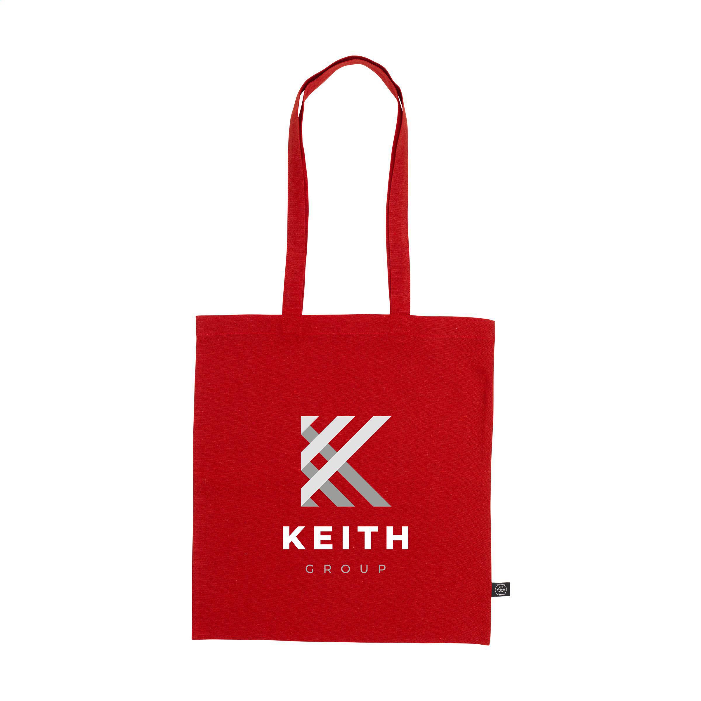 Einkaufstasche mit langen Griffen aus 80% recycelter Baumwolle und 20% recyceltem Polyester (150 g/m²). GRS-zertifiziert. Recyceltes Material insgesamt: 100%. Fassungsvermögen ca. 8 Liter.