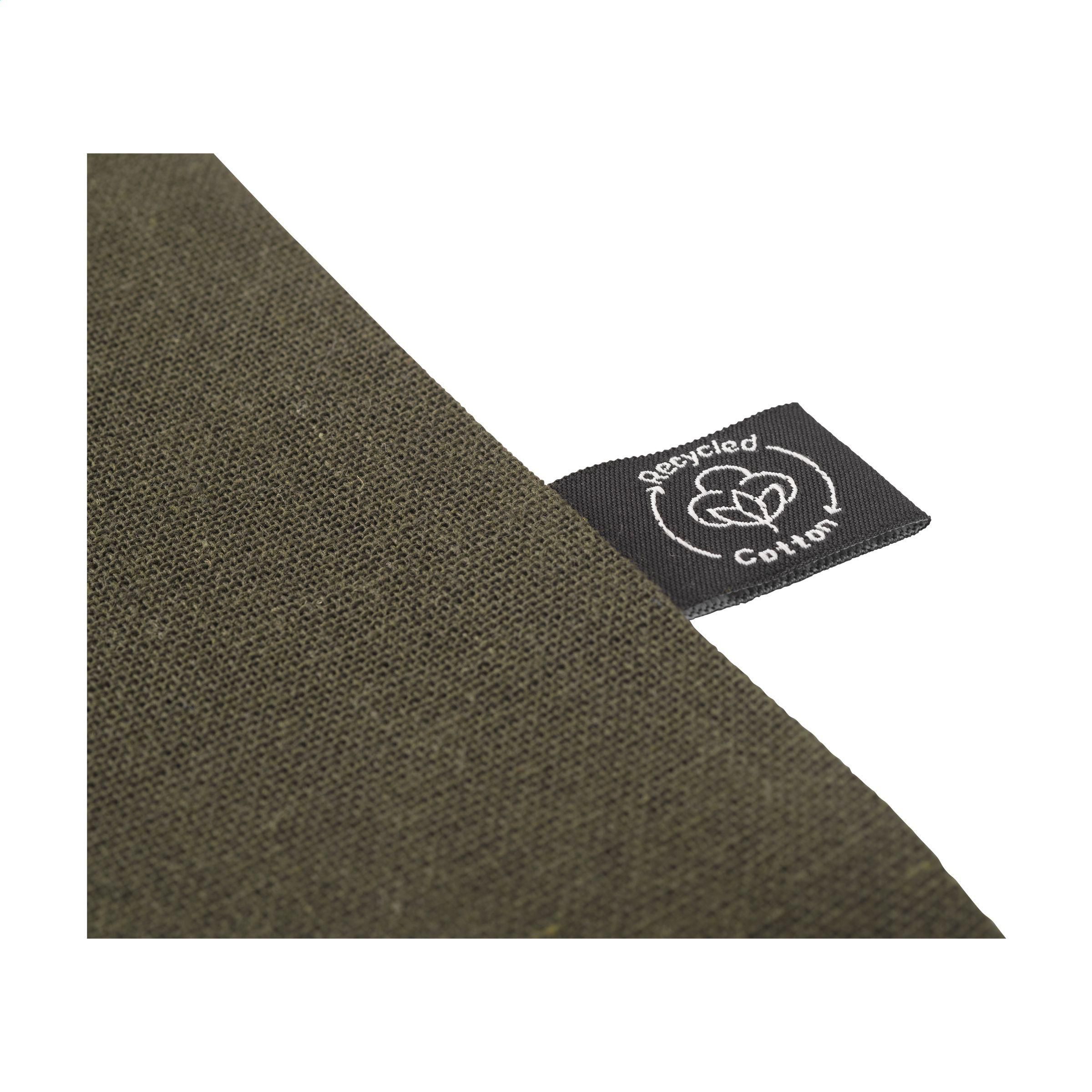 Einkaufstasche mit langen Griffen aus 80% recycelter Baumwolle und 20% recyceltem Polyester (150 g/m²). GRS-zertifiziert. Recyceltes Material insgesamt: 100%. Fassungsvermögen ca. 8 Liter.