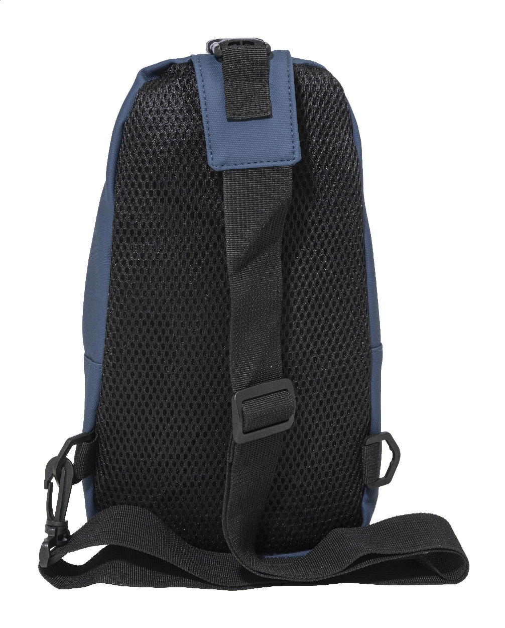 Wasserfeste Umhängetasche aus RPET mit Reißverschlusstaschen, Schnallenverschluss und gepolsterter Rückseite. Mit verstellbarem Schultergurt, der sowohl links- als auch rechtsseitig getragen werden kann. Material: PU-beschichtetes 600D RPET-Polyester. Mit RPET-Label.