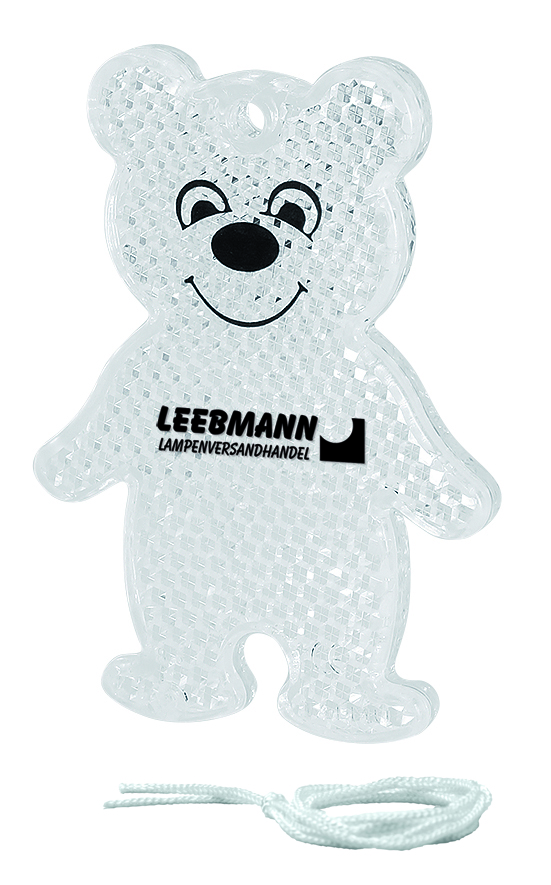 Sicherheits-Reflektor "Bär" zertifiziert nach EN 13356 und EG Baumuster, inkl. Faden und Polybeutel, ohne Motivdruck. Andere Druckmotive auf Anfrage