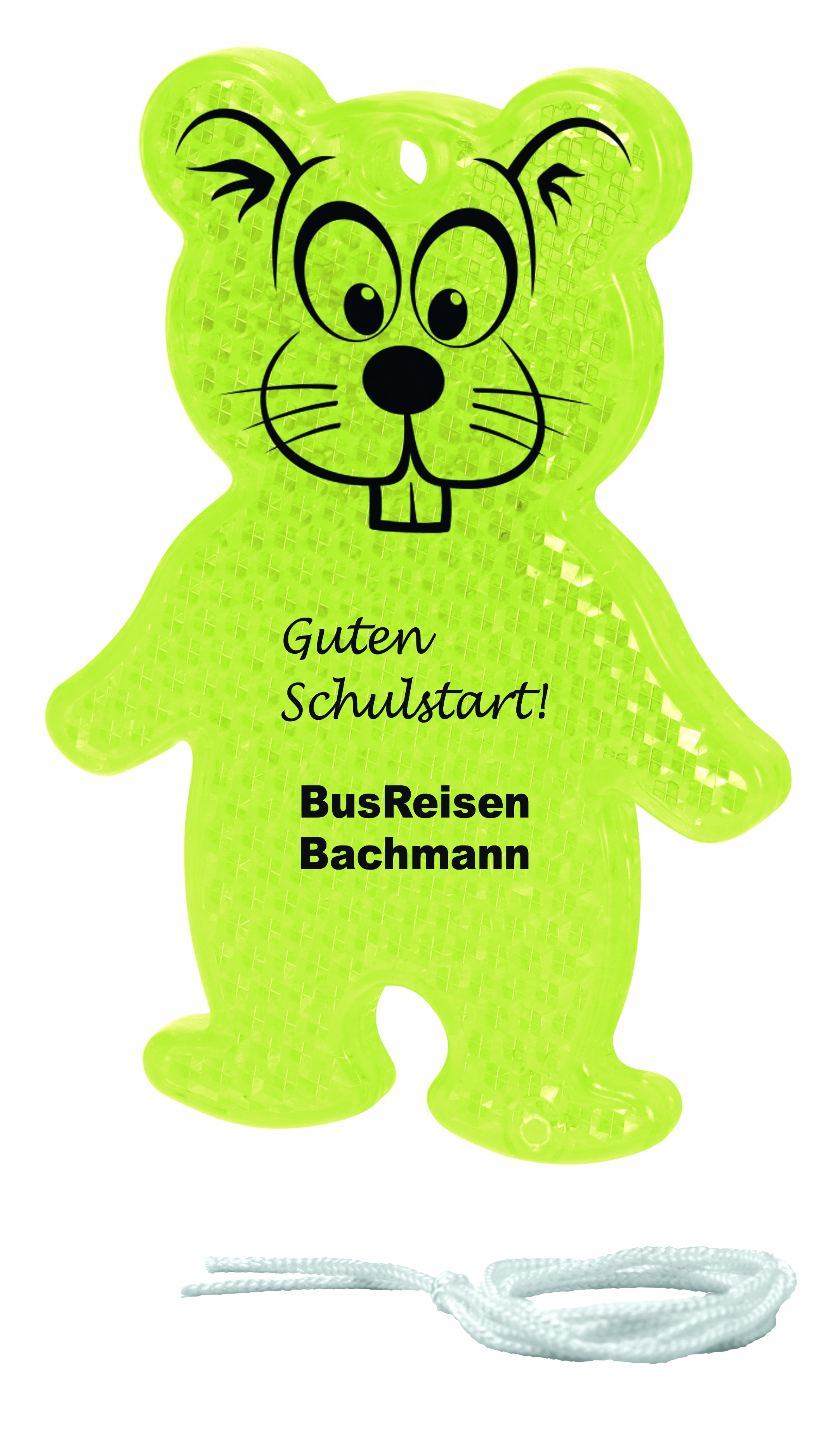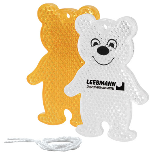 Sicherheits-Reflektor "Bär" zertifiziert nach EN 13356 und EG Baumuster, inkl. Faden und Polybeutel, ohne Motivdruck. Andere Druckmotive auf Anfrage