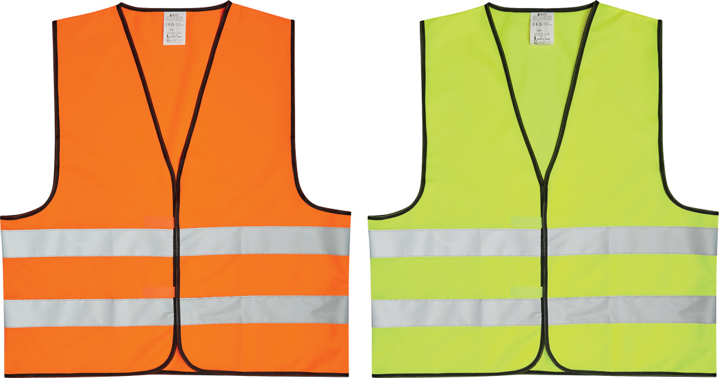 Sicherheits- / Warnweste HERO RELOADED, in Signalfarbe: mit Reflektorstreifen und Klettverschluss an der Vorderseite, im Polybeutel