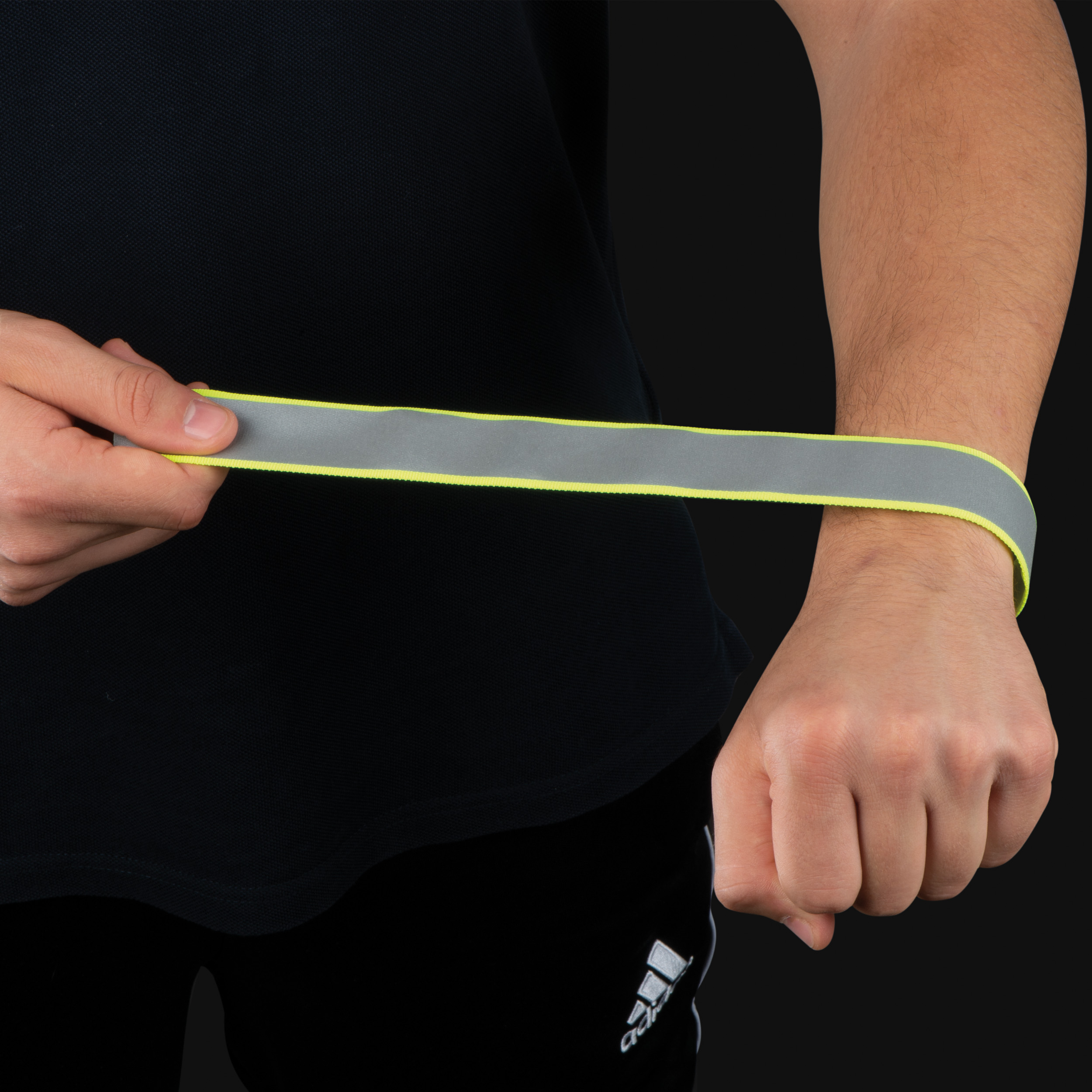 Flexibles, reflektierendes Sicherheits-Schnapparmband mit 36,5 cm Länge. Ihre Werbung wird auf der reflektierenden Fläche angebracht.