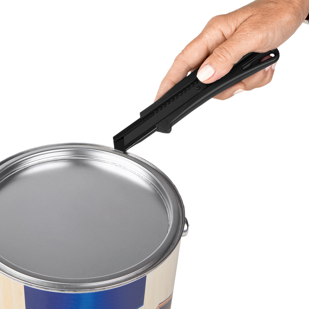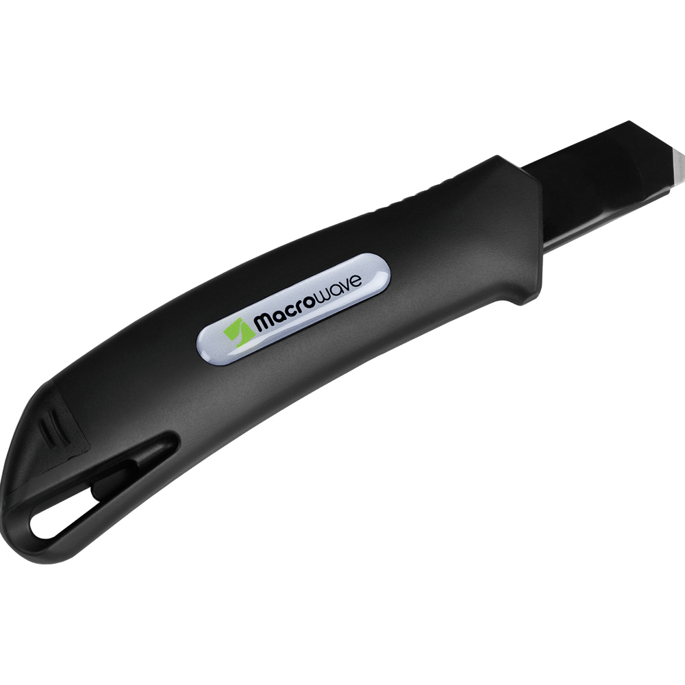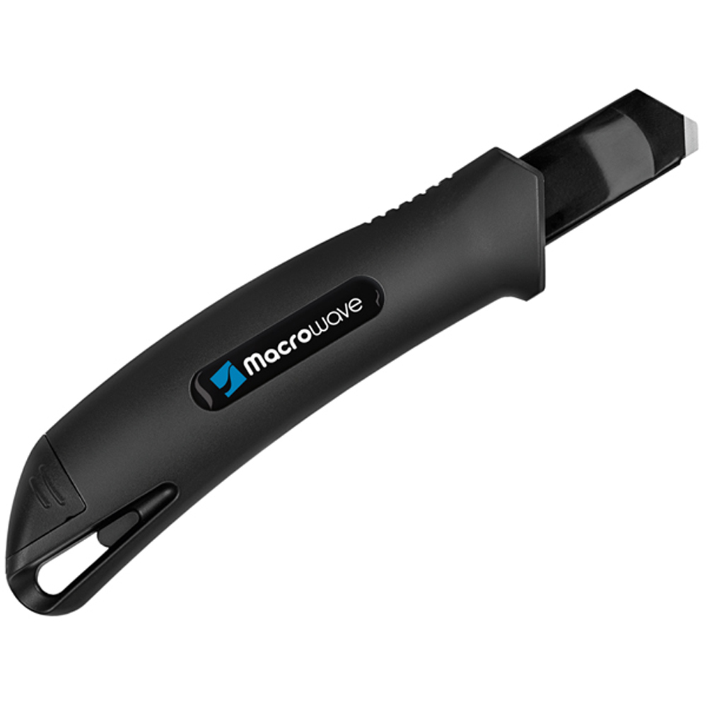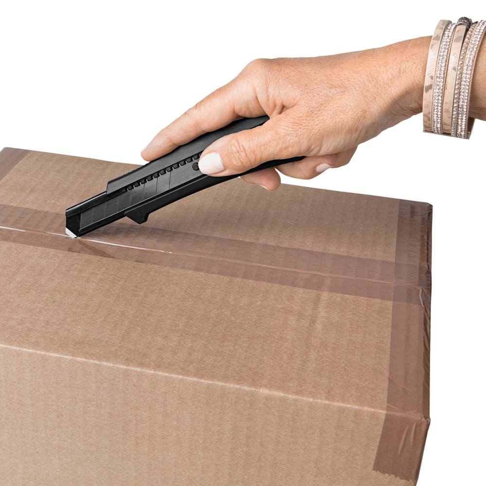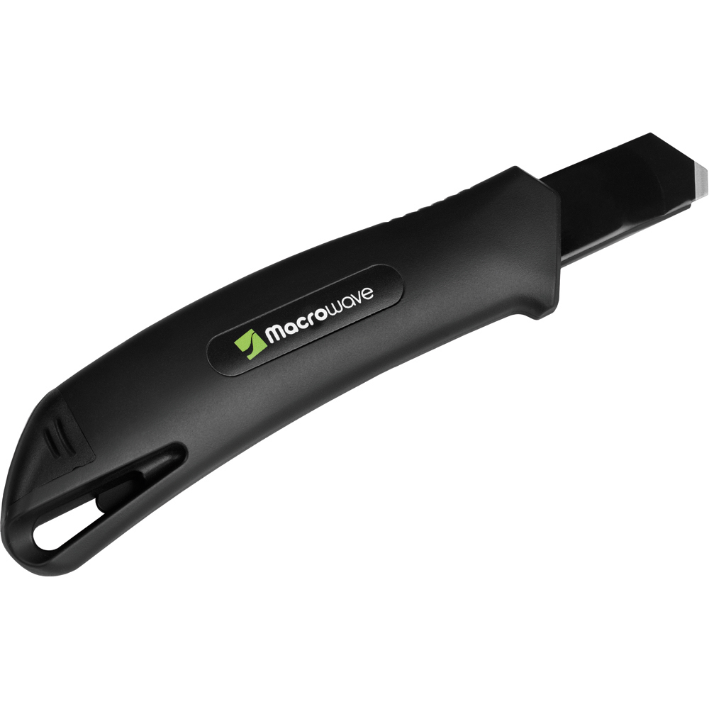 Das Sicherheitsmesser erfüllt höchste Ansprüche im Bereich Arbeitsschutz und Arbeitssicherheit. Es ist ein 2-Funktionen-Messer: Der integrierte Federrückzug sorgt für automatischen Klingenrückzug. Alternativ ist ebenso die feststehende Nutzung mittels Rasterautomatik möglich. Die Spitze der Klingenführungsschiene ist gehärtet, sodass diese auch als Farbdosenöffner, Notschraubendreher, oder als Schnellschneider für Paketklebeband, usw. ohne die Klinge ausfahren zu müssen, verwendet werden kann. Material: schlagfestes Gehäuse aus ABS, gummierte Oberfläche matt, Klingenführungsschiene aus schwarz beschichtetem Edelstahl 430, Schieber aus TPR / ABS. Klinge: 18 mm Abbrechklinge aus SK2 Carbonstahl, Stärke 0,6 mm, Rockwell 62 HRC (gehobene Qualitätsstufe), Korrosionsschutz durch Brünieren, max. Klingenausschub 76 mm (Cuttermesser), max. Schnitttiefe 13 mm (Sicherheitsmesser), 2-seitiger Klingenschliff, 7 Abbrechsegmente für 8-fache Nutzung. Funktionen: Sicherheitsmesser mit automatischem Klingenrückzug, Cuttermesser mit feststellbarer Abbrechklinge, Endkappe zum Abbrechen der Klingensegmente, gehärtete Spitze der Klingenführungsschiene zum Verwenden als Farbdosenöffner, Notschraubendreher, Schnellschneider für Paketklebeband usw. Klingenwechsel ohne weitere Hilfsmittel, Öse zum Anbringen eines Lanyards oder Fangriemen. Zubehör: 1 Ersatzklinge mit 0,6 mm Stärke im separaten Ersatzklingenbehälter, Verpackung: schwarze Geschenkverpackung