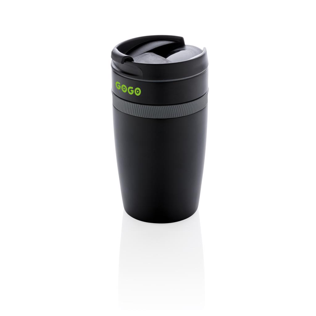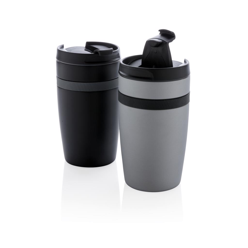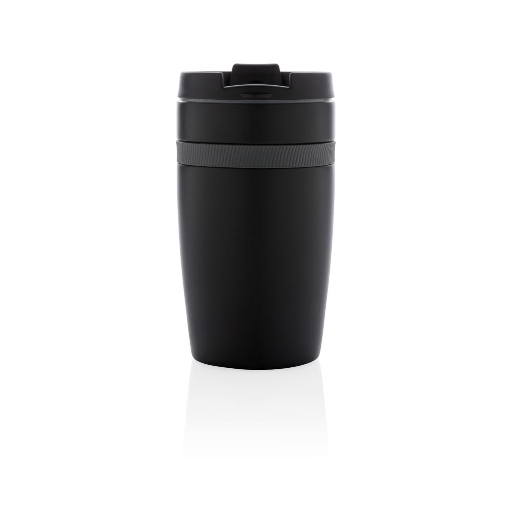 Die perfekte Größe - passt unter die meisten Kaffeemaschinen. Dieser doppelwandige, vakuumisolierte Becher aus Stainless-Steel mit Silikondetail hält Ihre Getränke bis zu 5h heiß und bis zu 15h kalt. Inhalt: 280ml. Nur Handwäsche. Registered design®
