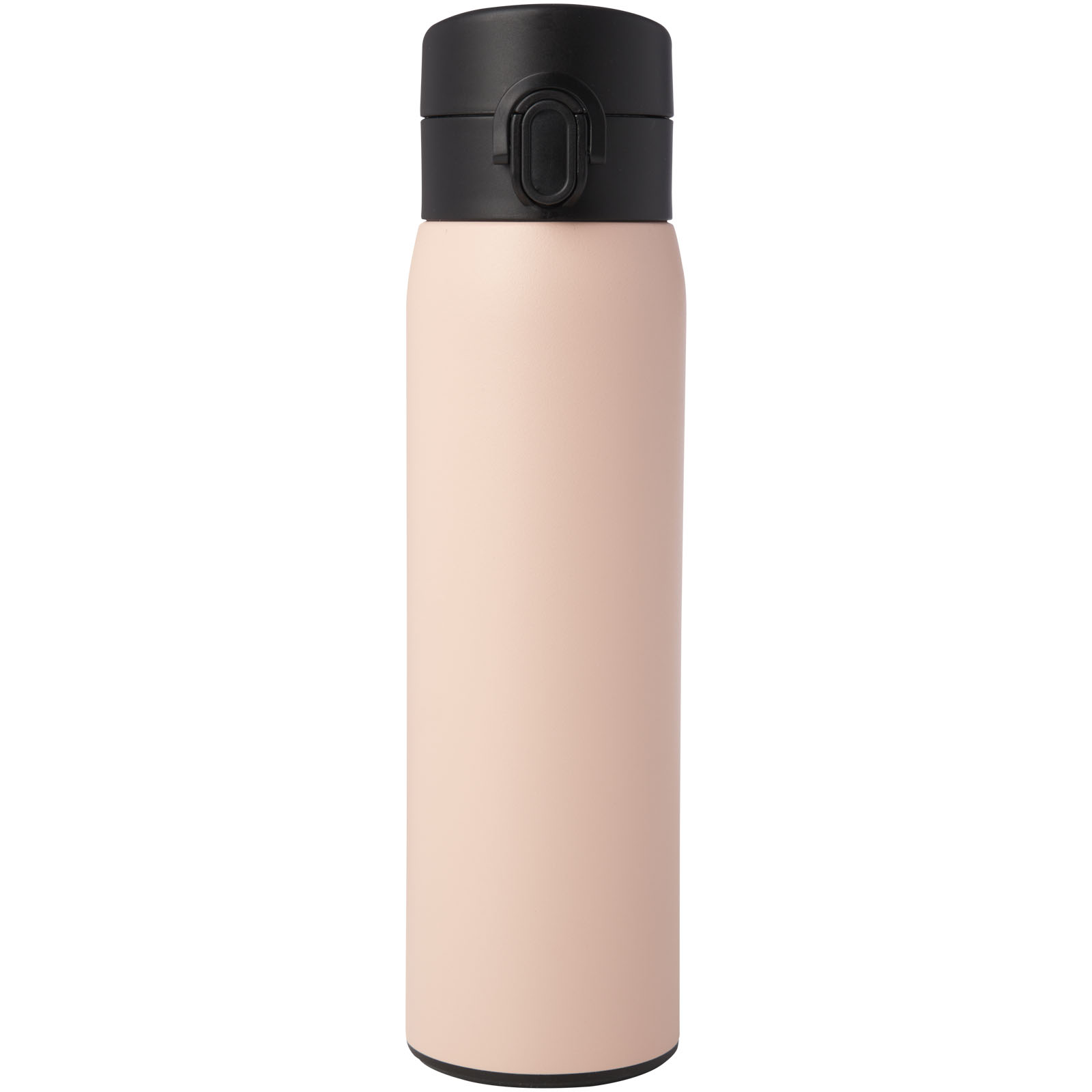 Elegante, RCS-zertifizierte Isolierflasche aus recyceltem Edelstahl mit einfachem Öffnungsmechanismus per Knopfdruck. Die Flasche ist auslaufsicher, und dank der Kupfer-Vakuumisolierung bleiben die Getränke mehrere Stunden lang heiß oder kalt. Das Fassungsvermögen beträgt 450 ml. Verpackt in einer Geschenkbox aus Recyclingkarton.