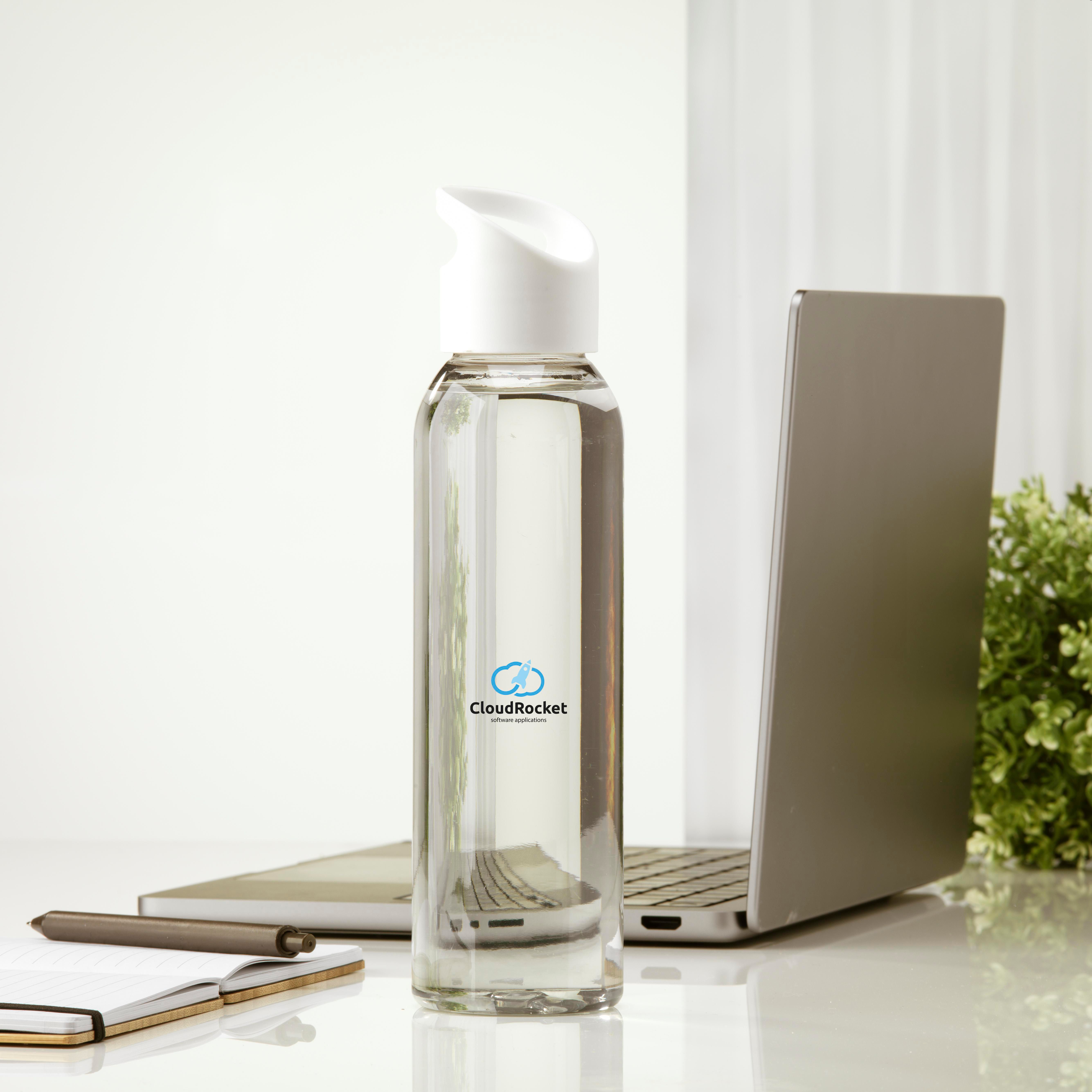 Luxuriöse Wasserflasche aus klarem RPET. Mit praktischem Schraubverschluss aus Kunststoff. Auslaufsicher und wiederverwendbar. Nicht spülmaschinengeeignet. Inhalt 650 ml. GRS-zertifiziert. Gesamtes recyceltes Material: 82%.