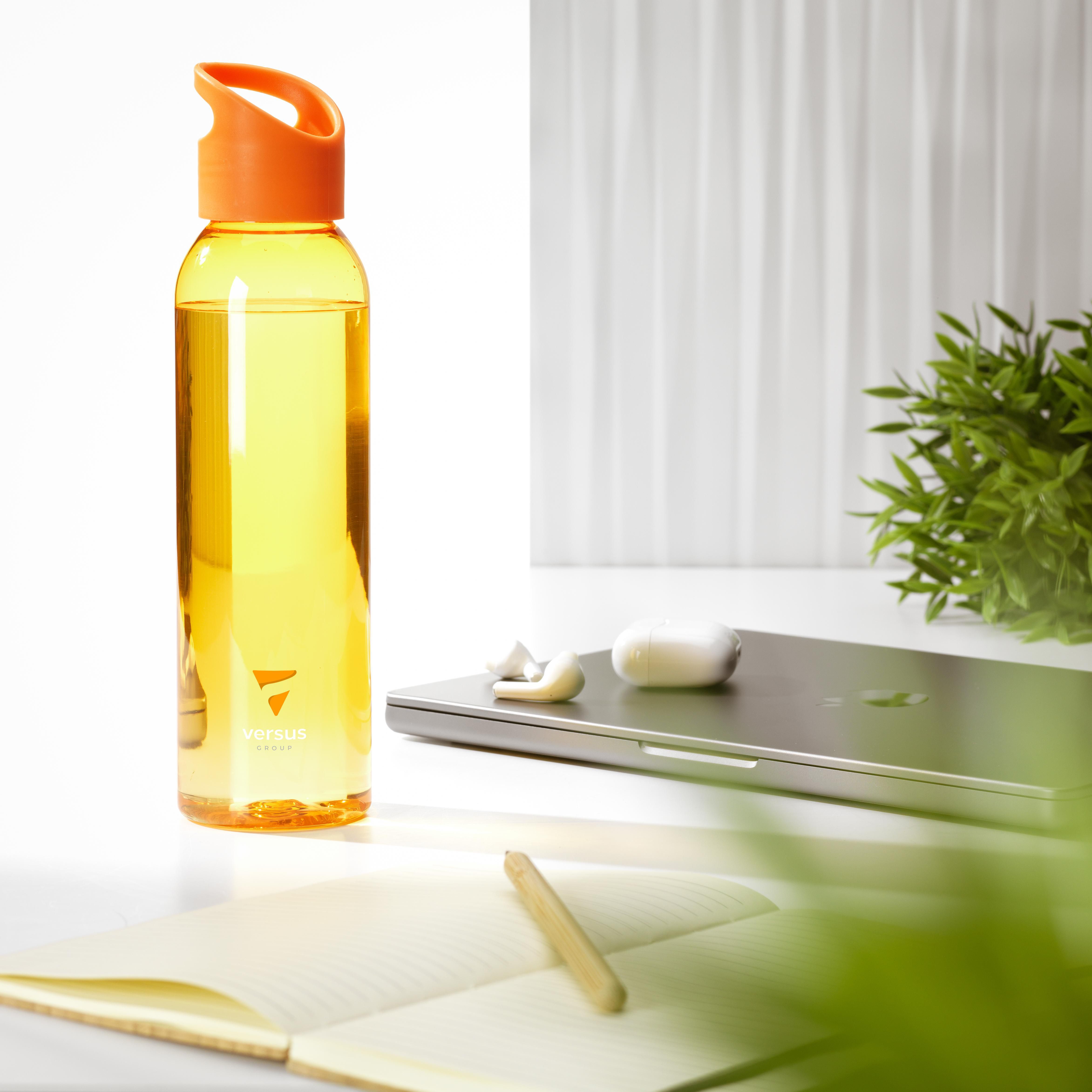 Luxuriöse Wasserflasche aus klarem RPET. Mit praktischem Schraubverschluss aus Kunststoff. Auslaufsicher und wiederverwendbar. Nicht spülmaschinengeeignet. Inhalt 650 ml. GRS-zertifiziert. Gesamtes recyceltes Material: 82%.