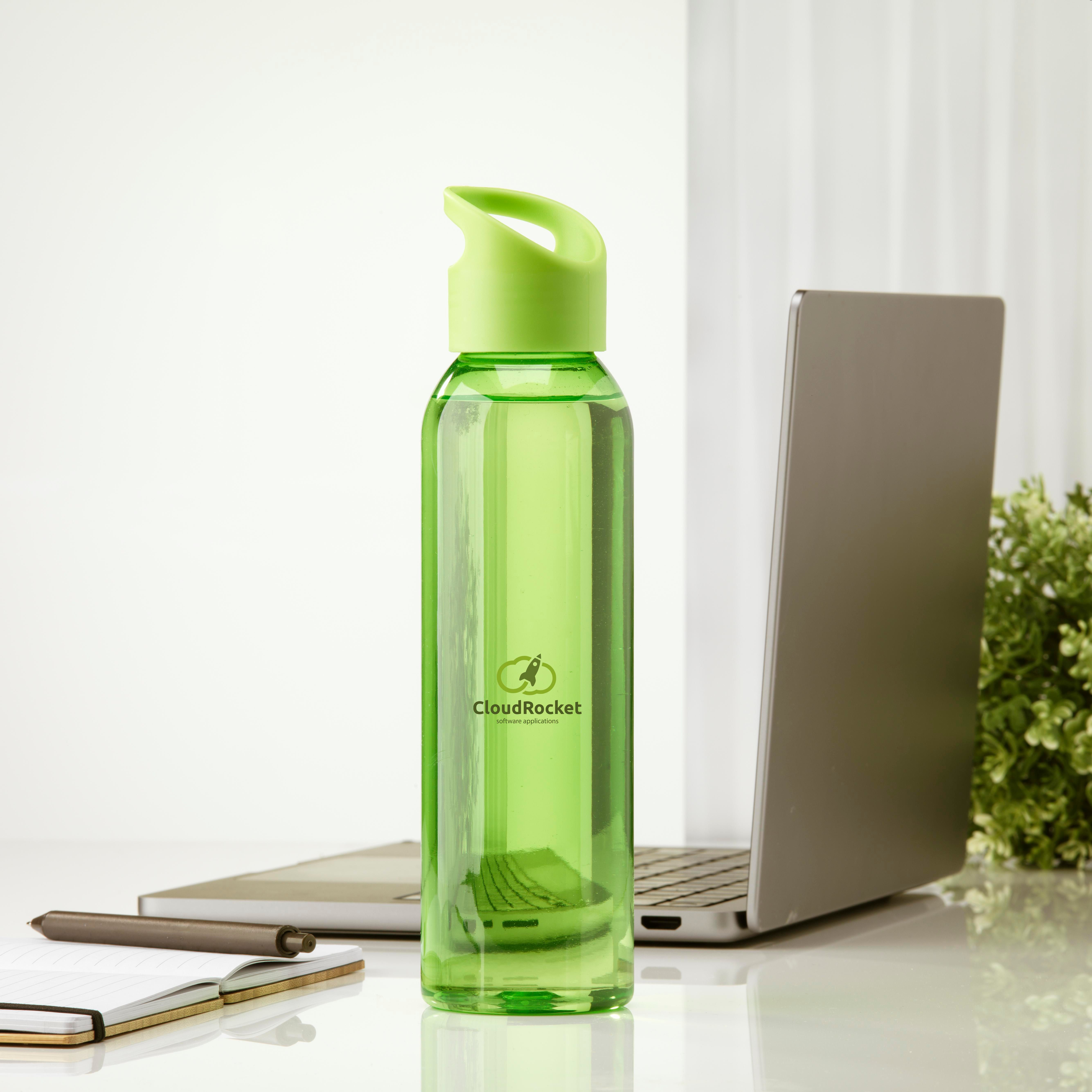 Luxuriöse Wasserflasche aus klarem RPET. Mit praktischem Schraubverschluss aus Kunststoff. Auslaufsicher und wiederverwendbar. Nicht spülmaschinengeeignet. Inhalt 650 ml. GRS-zertifiziert. Gesamtes recyceltes Material: 82%.