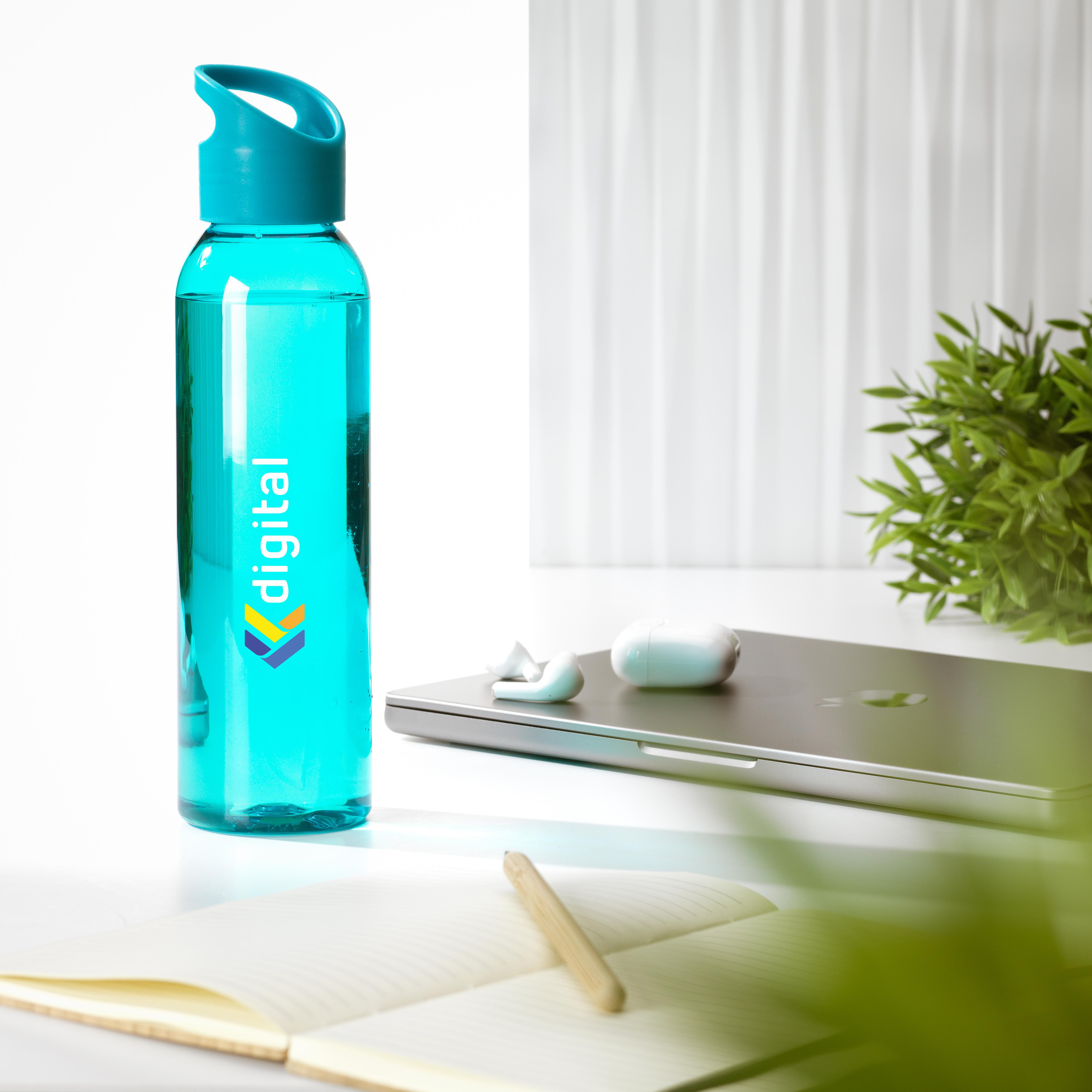 Luxuriöse Wasserflasche aus klarem RPET. Mit praktischem Schraubverschluss aus Kunststoff. Auslaufsicher und wiederverwendbar. Nicht spülmaschinengeeignet. Inhalt 650 ml. GRS-zertifiziert. Gesamtes recyceltes Material: 82%.
