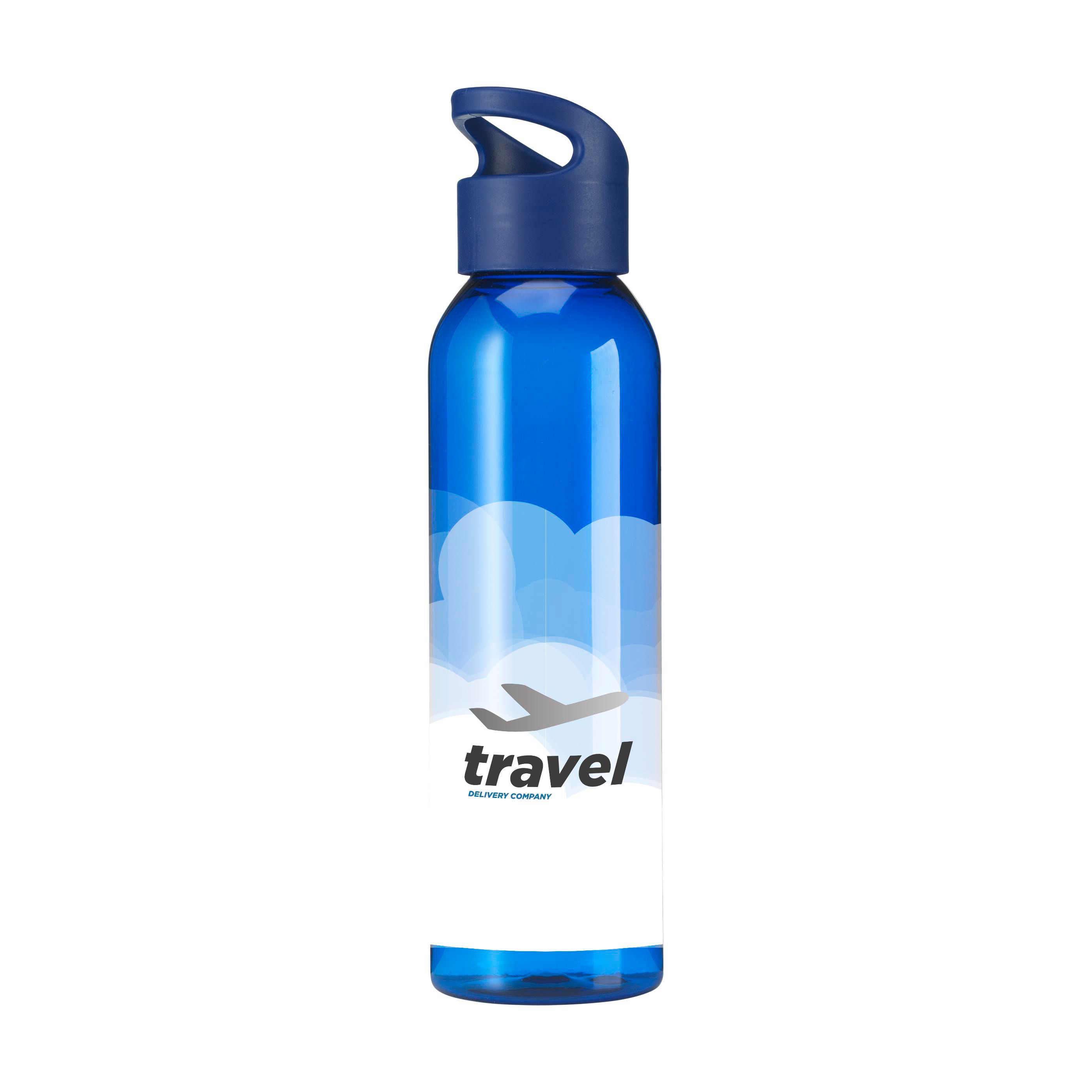 Luxuriöse Wasserflasche aus klarem RPET. Mit praktischem Schraubverschluss aus Kunststoff. Auslaufsicher und wiederverwendbar. Nicht spülmaschinengeeignet. Inhalt 650 ml. GRS-zertifiziert. Gesamtes recyceltes Material: 82%.