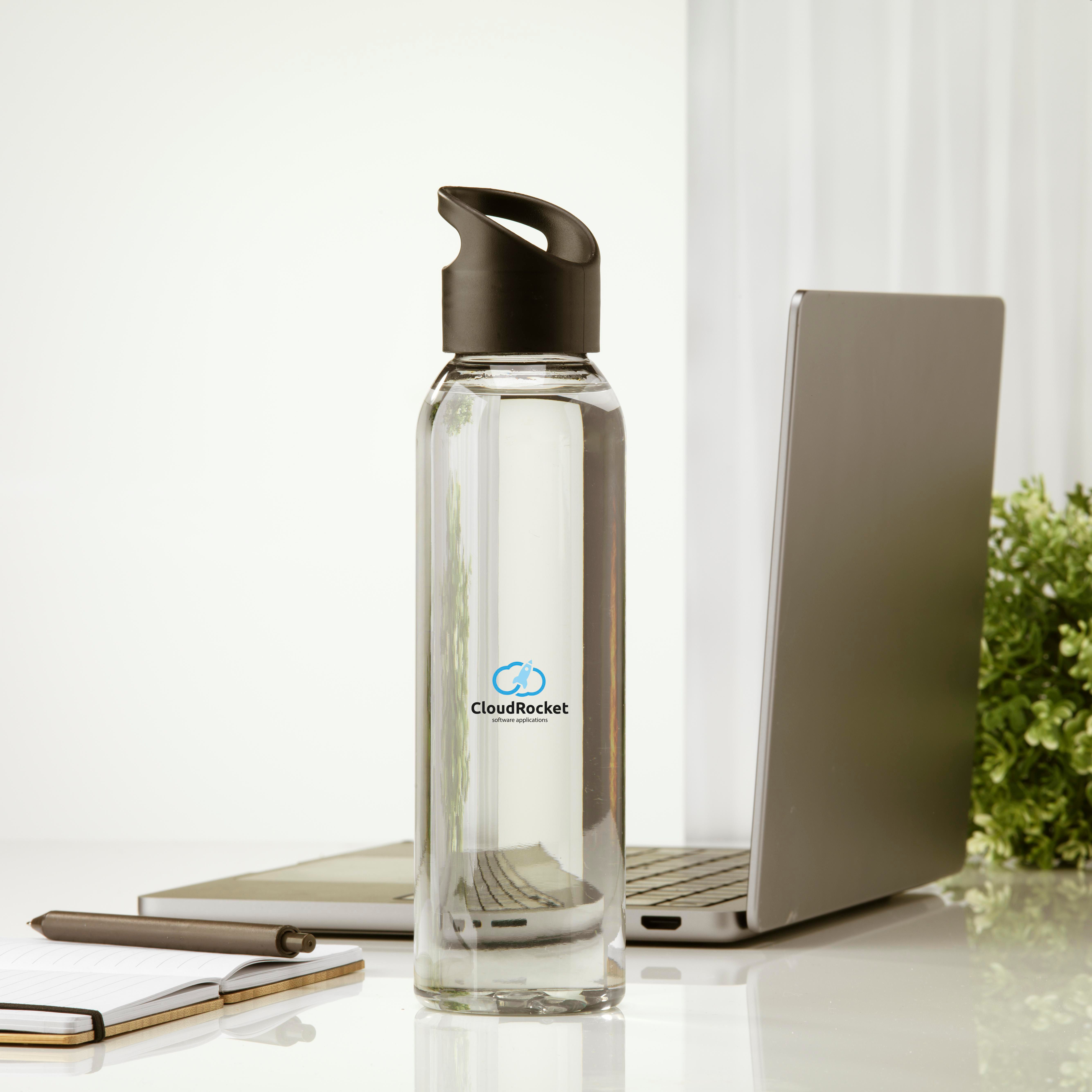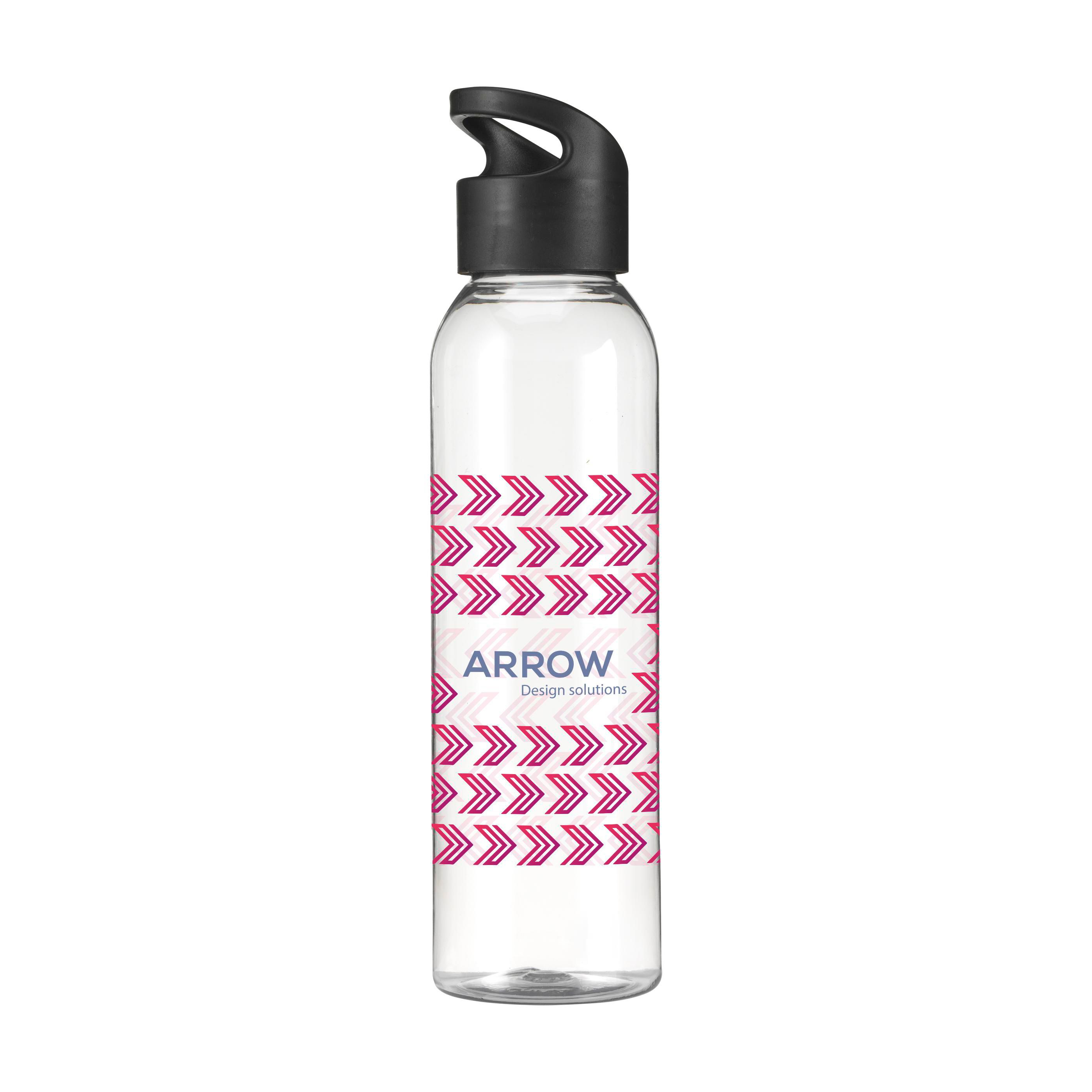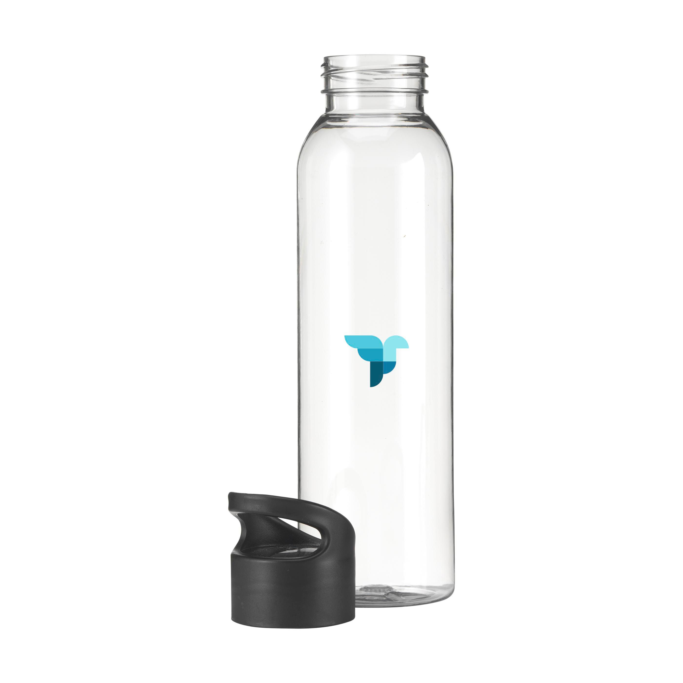 Luxuriöse Wasserflasche aus klarem RPET. Mit praktischem Schraubverschluss aus Kunststoff. Auslaufsicher und wiederverwendbar. Nicht spülmaschinengeeignet. Inhalt 650 ml. GRS-zertifiziert. Gesamtes recyceltes Material: 82%.