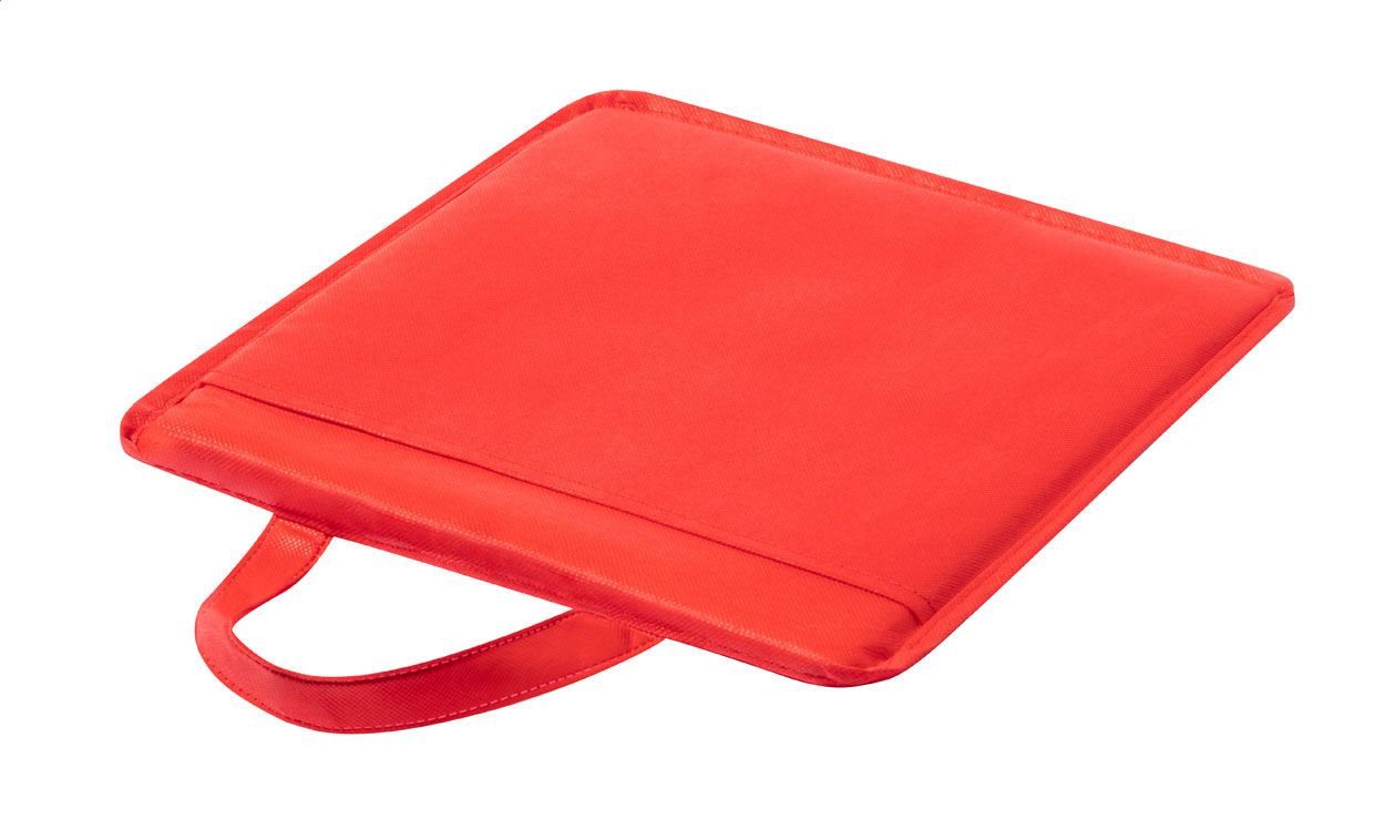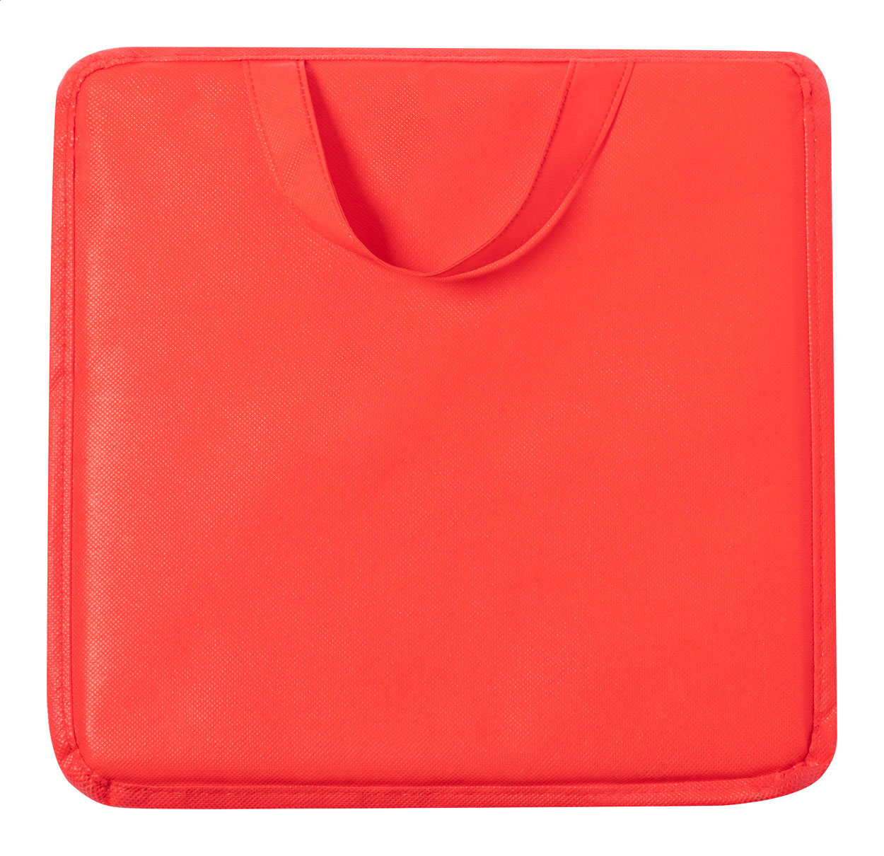 Sitzkissen aus Non-Woven mit Tragegriff und Tasche.