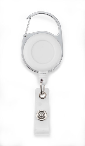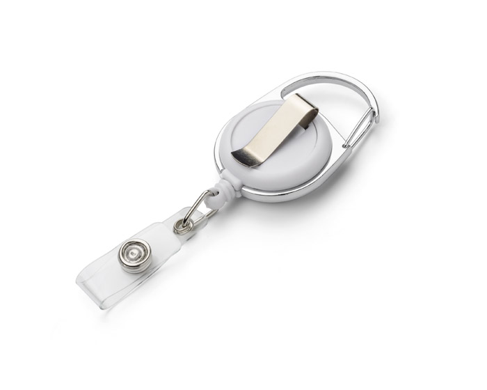 Skipasshalter aus Kunststoff mit einem Metallclip und Karabiner mit Kabeleinzug zum Aufhängen von Identifizierungskarte und anderer Dokumente.
