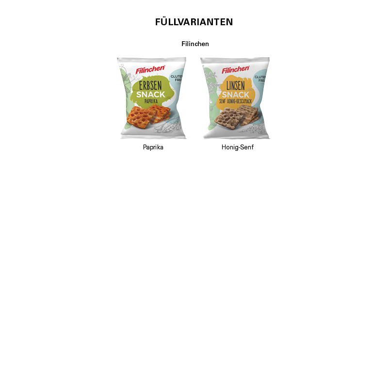 1 Beutel Filinchen Erbsen Snack, Paprika oder 1 Beutel Filinchen Linsen Snack, Senf/Honig