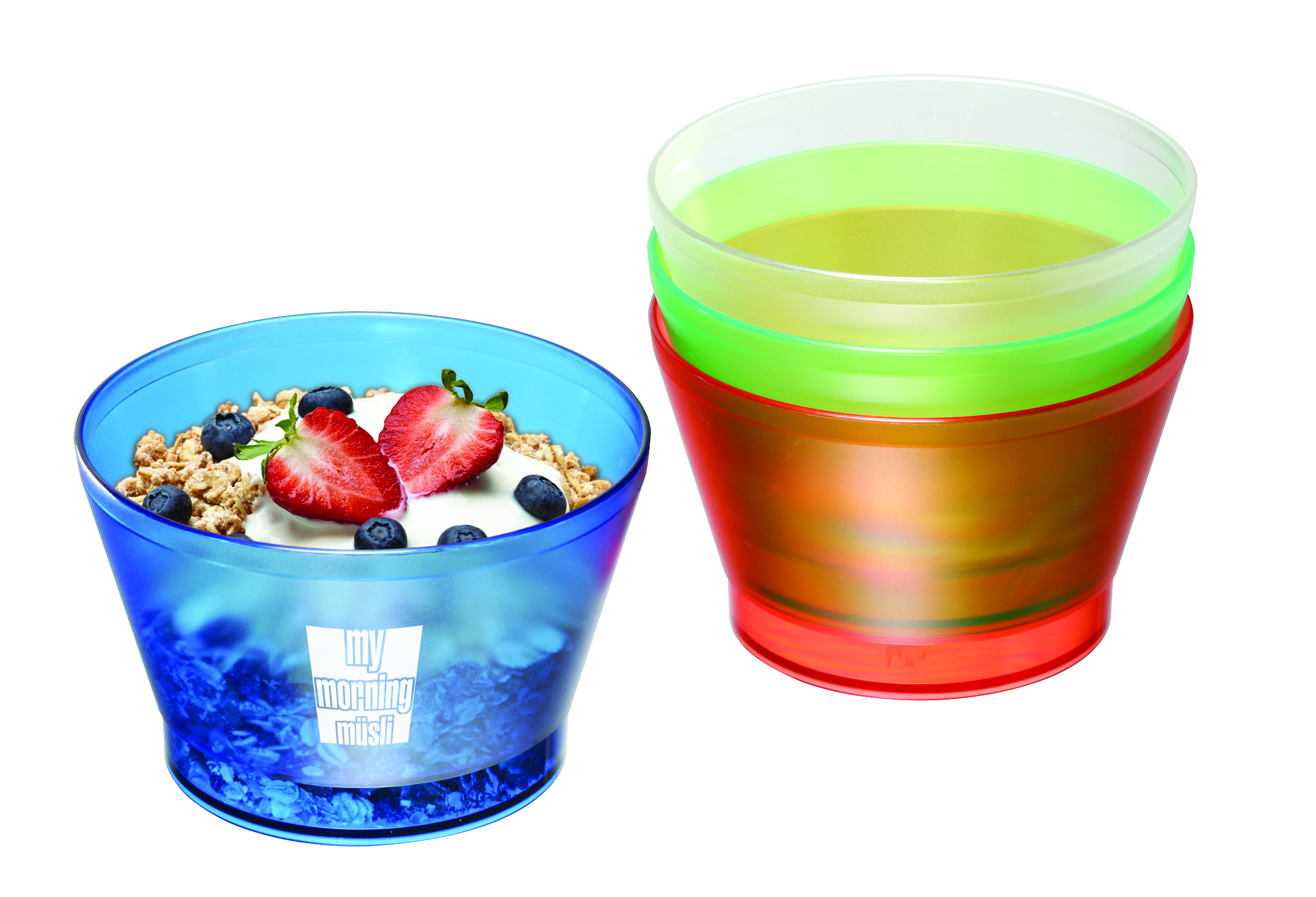 Snack- und Müslischale für einen guten Start in den Tag, trendige Farben, stapelbar, ca. 600 ml. Passende Becher siehe Art. Nr. 7045Z