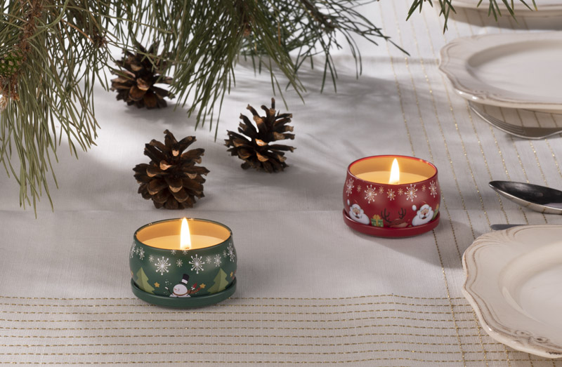 KERI Kerze mit natürlichem Sojawachs in einem zarten Kamillenduft. Kerze in wiederverschließbarer Originaldose mit Weihnachtsaufdruck.