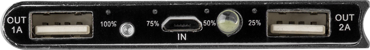 Solar-Powerbank aus ABS und Aluminium mit 8000 mAh Kapazität, 5V/1000 mAh Ein- und Ausgangsleistung, USB-Port und Ladekabel von USB zu Mikro-USB.