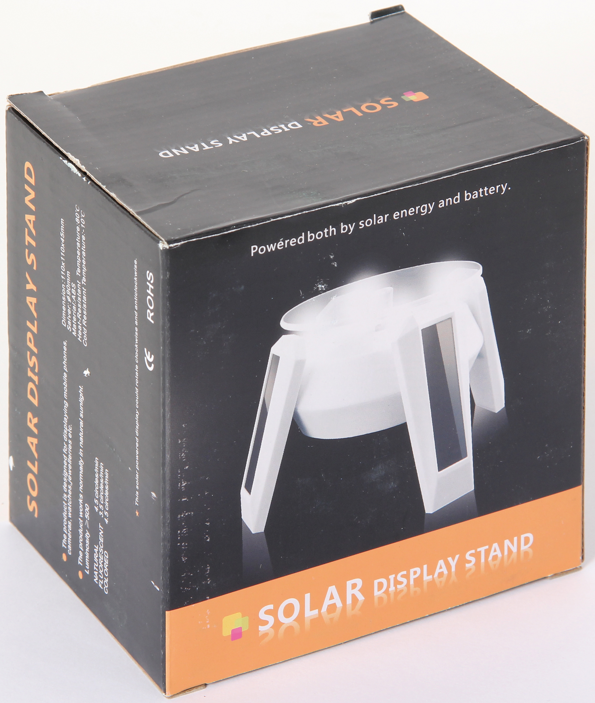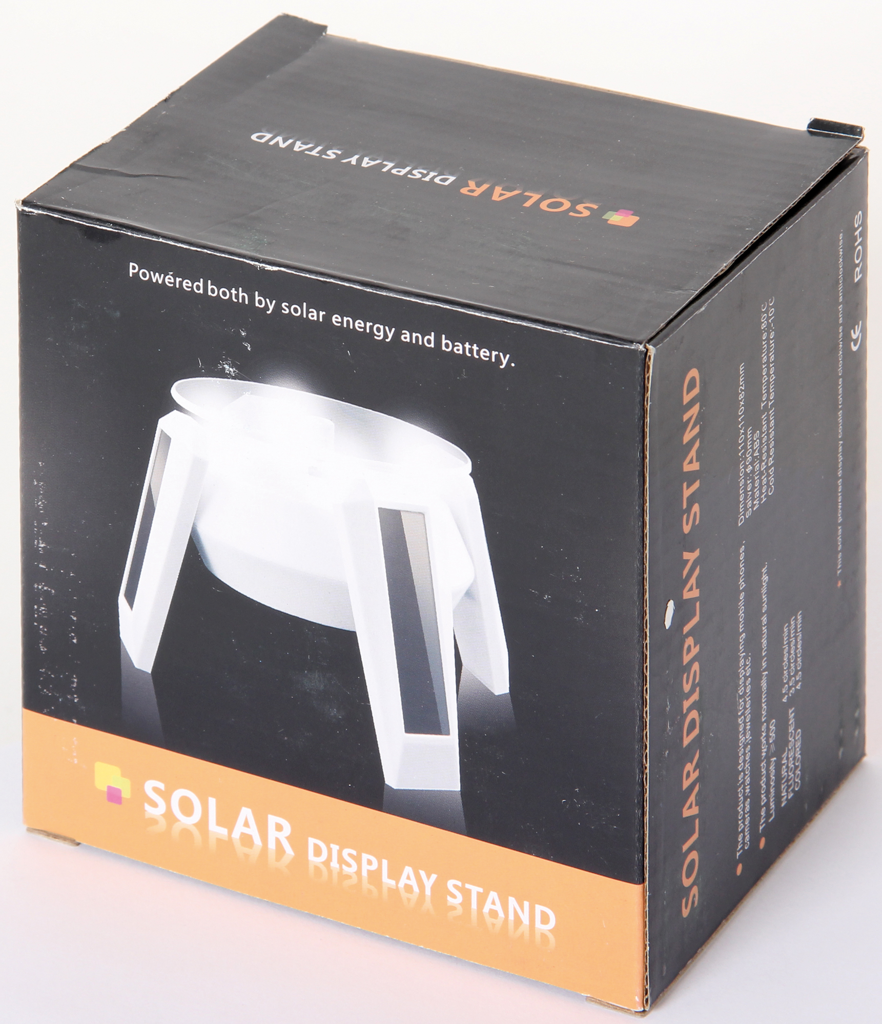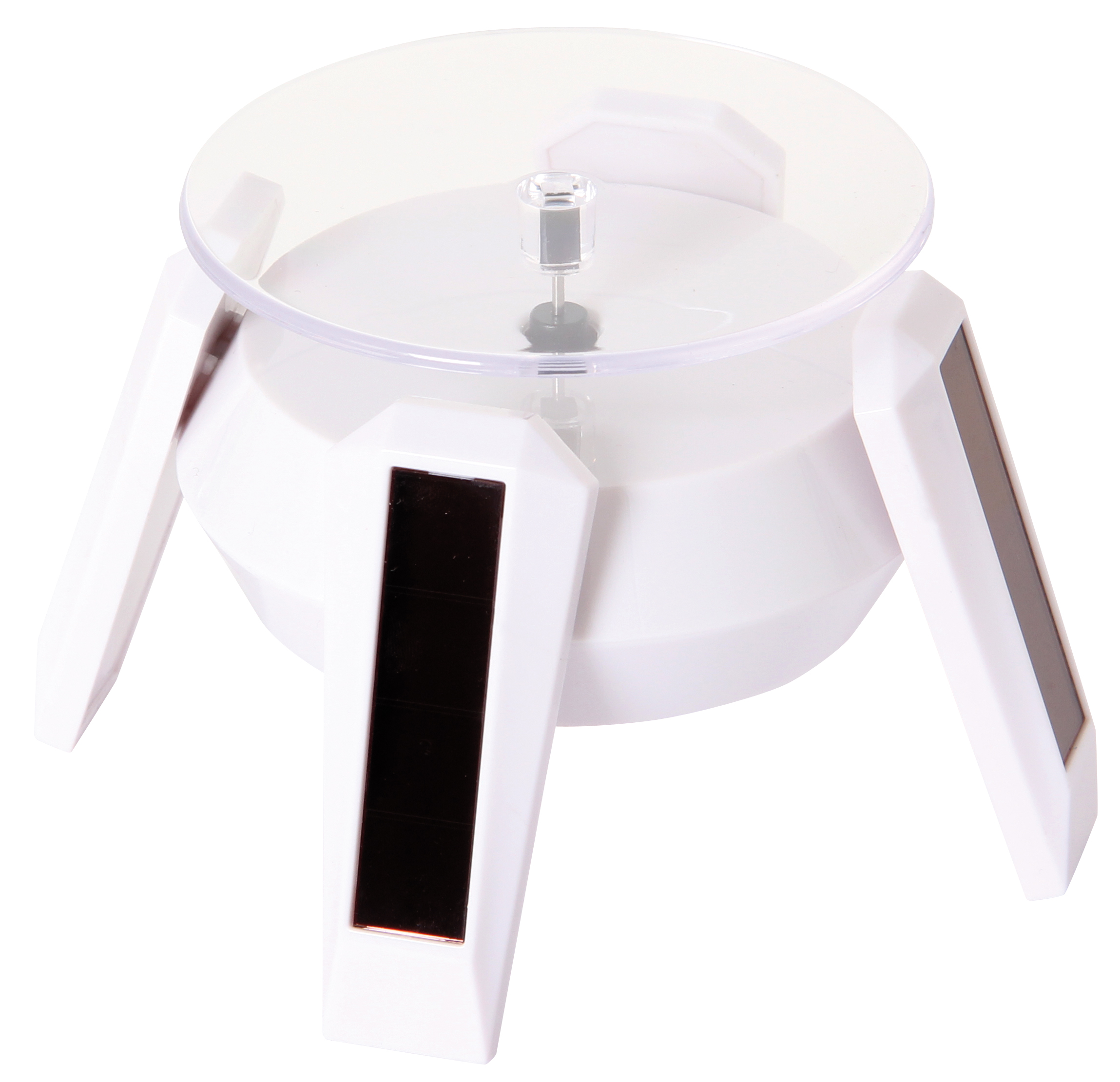 Bei Lichteinwirkung dreht sich die Präsentationsscheibe. Alternativ ist auch Batteriebetrieb möglich (eine 1,5 Volt AAA Batterie, nicht enthalten).