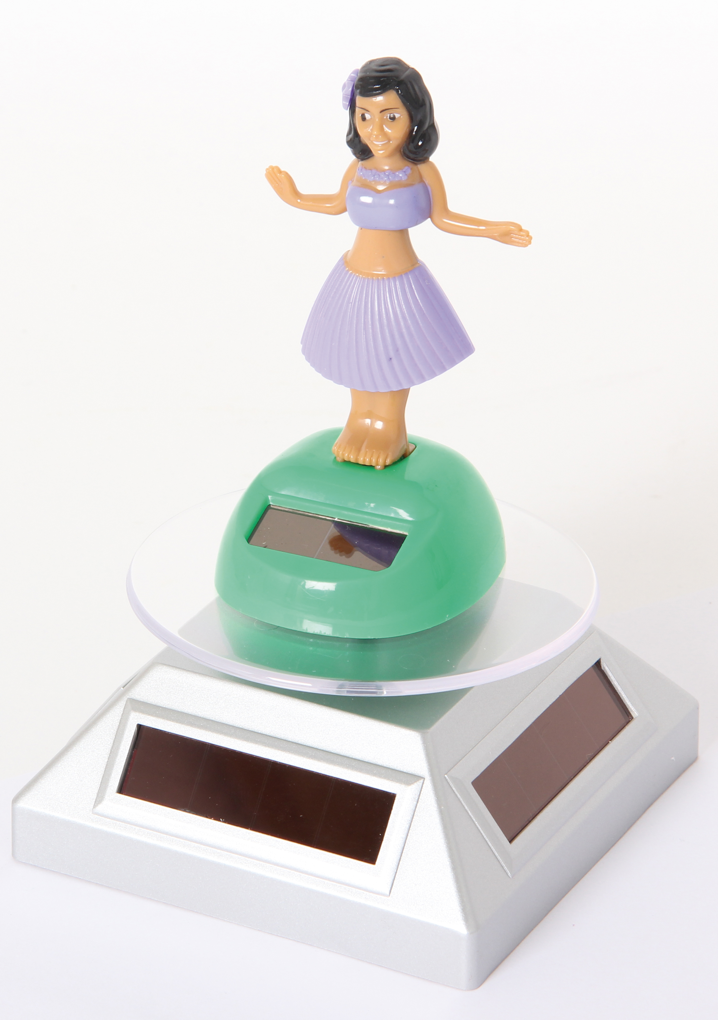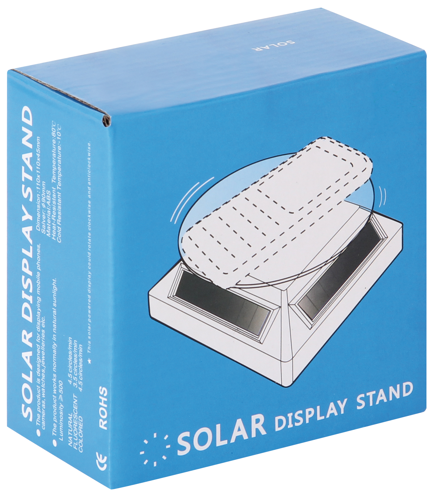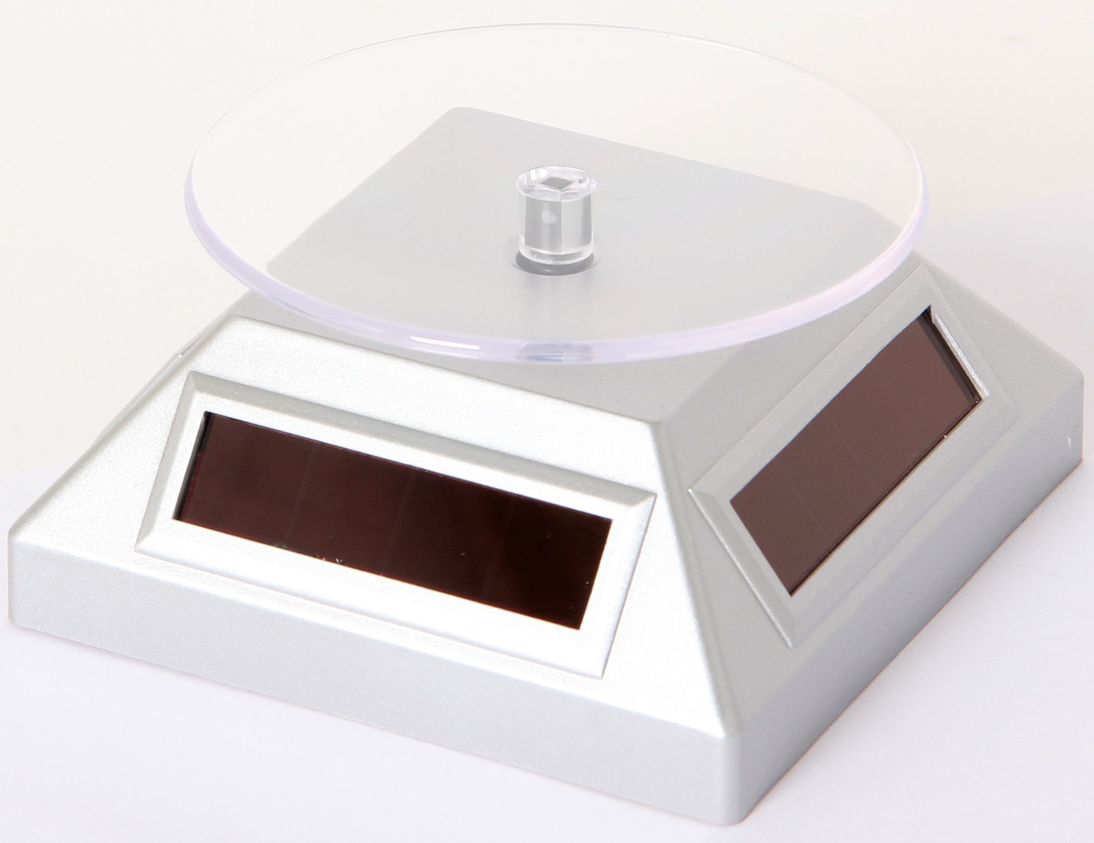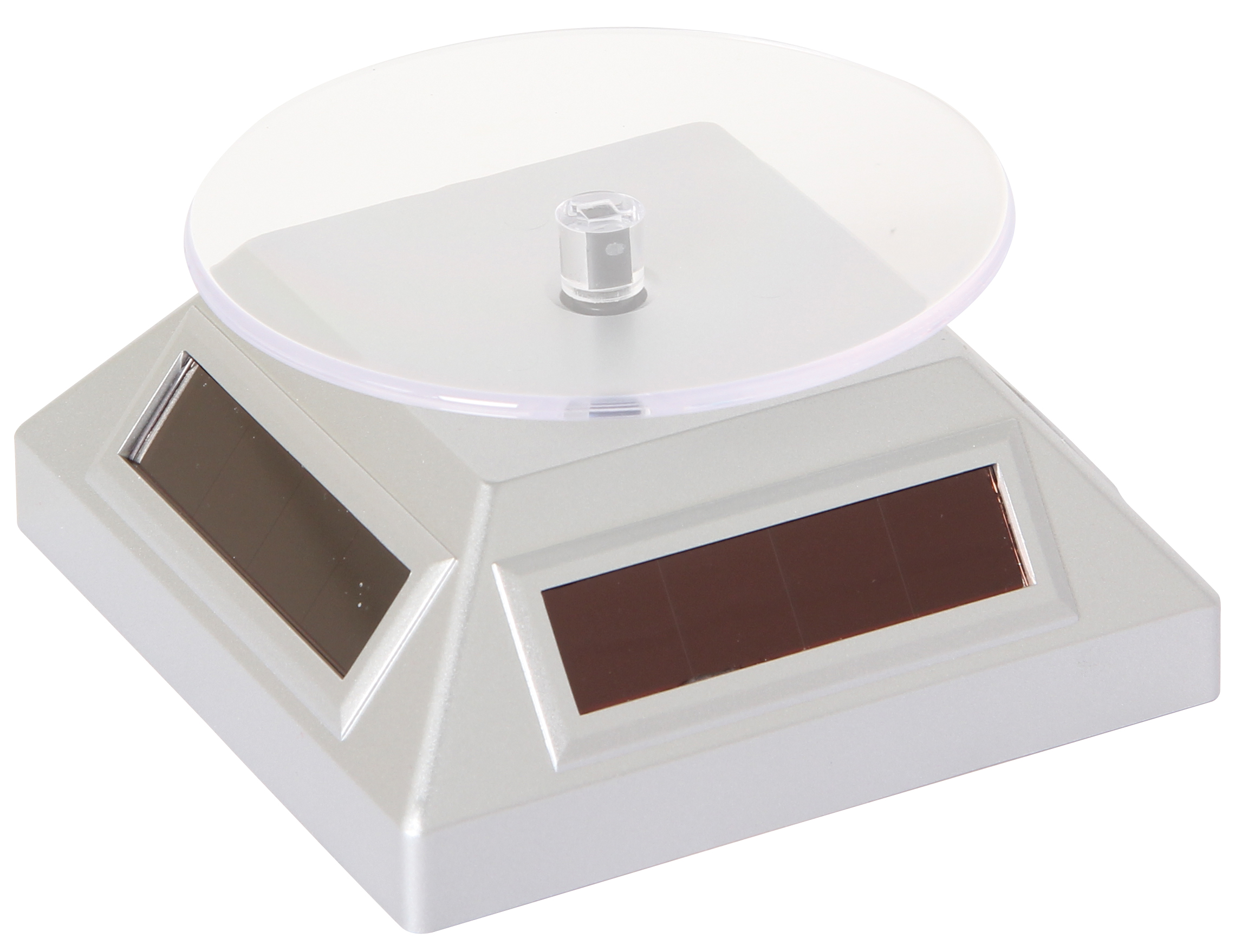 Bei Lichteinwirkung dreht sich die Präsentationsscheibe. Alternativ ist auch Batteriebetrieb möglich (eine 1,5 Volt AAA Batterie, nicht enthalten).