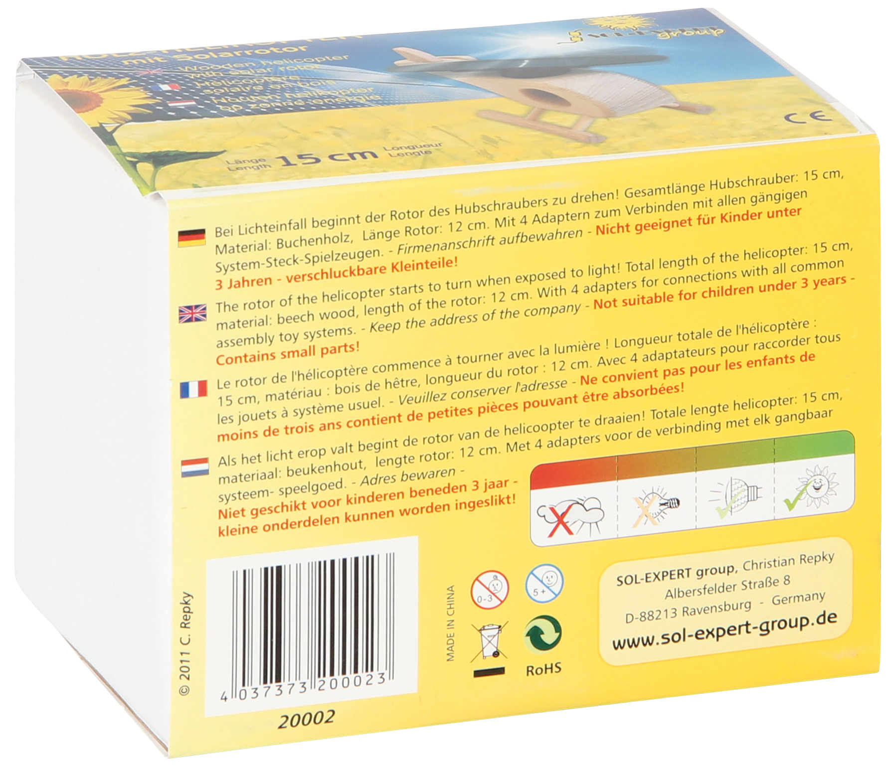 Wenn Sie weitere Informationen zu dem Artikel Solar Hubschrauber benötigen, können Sie sich gerne mit unseren Experten unter