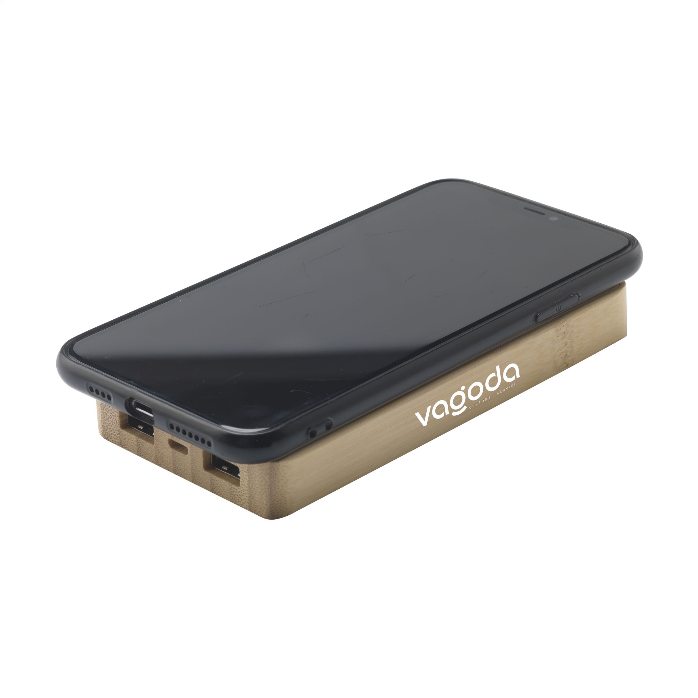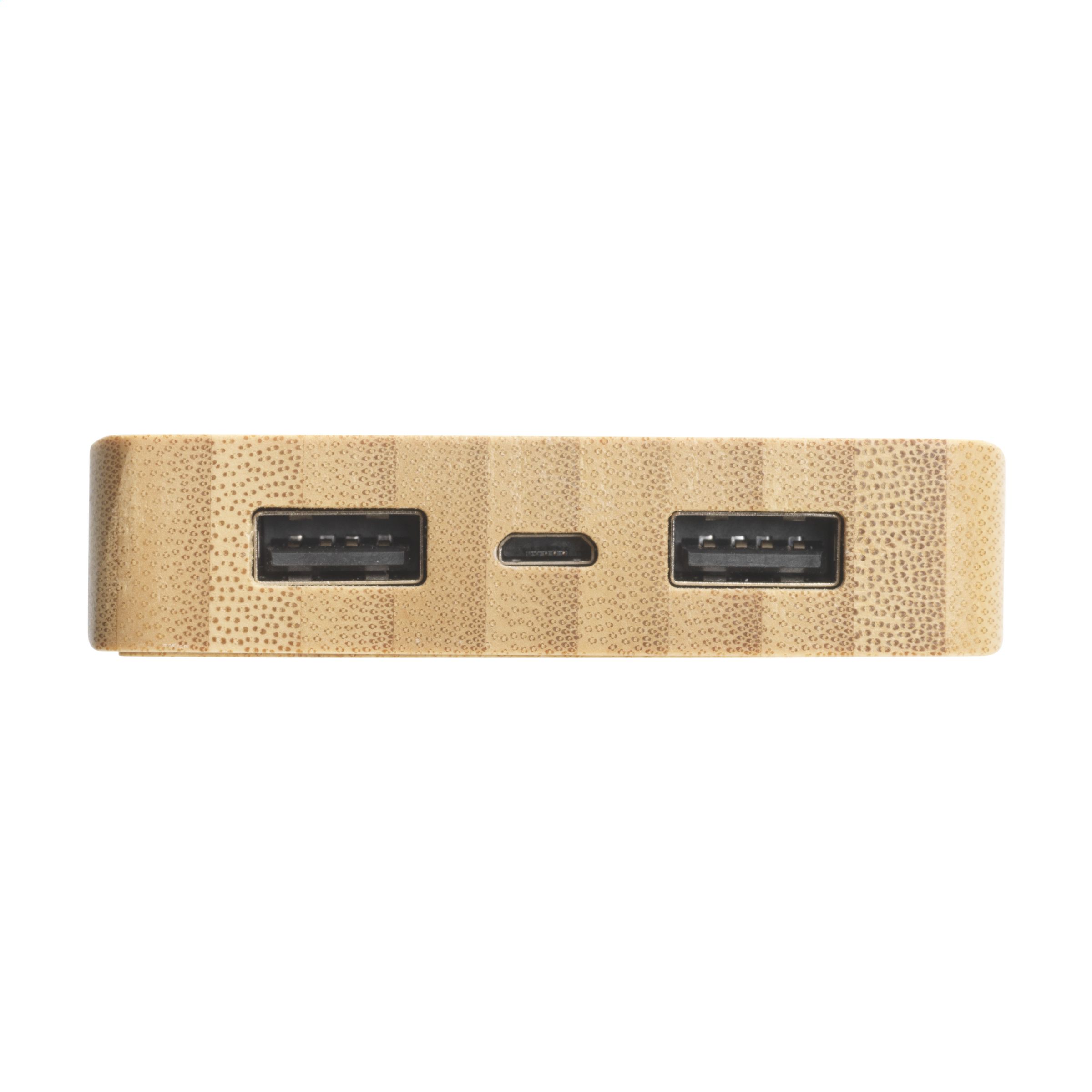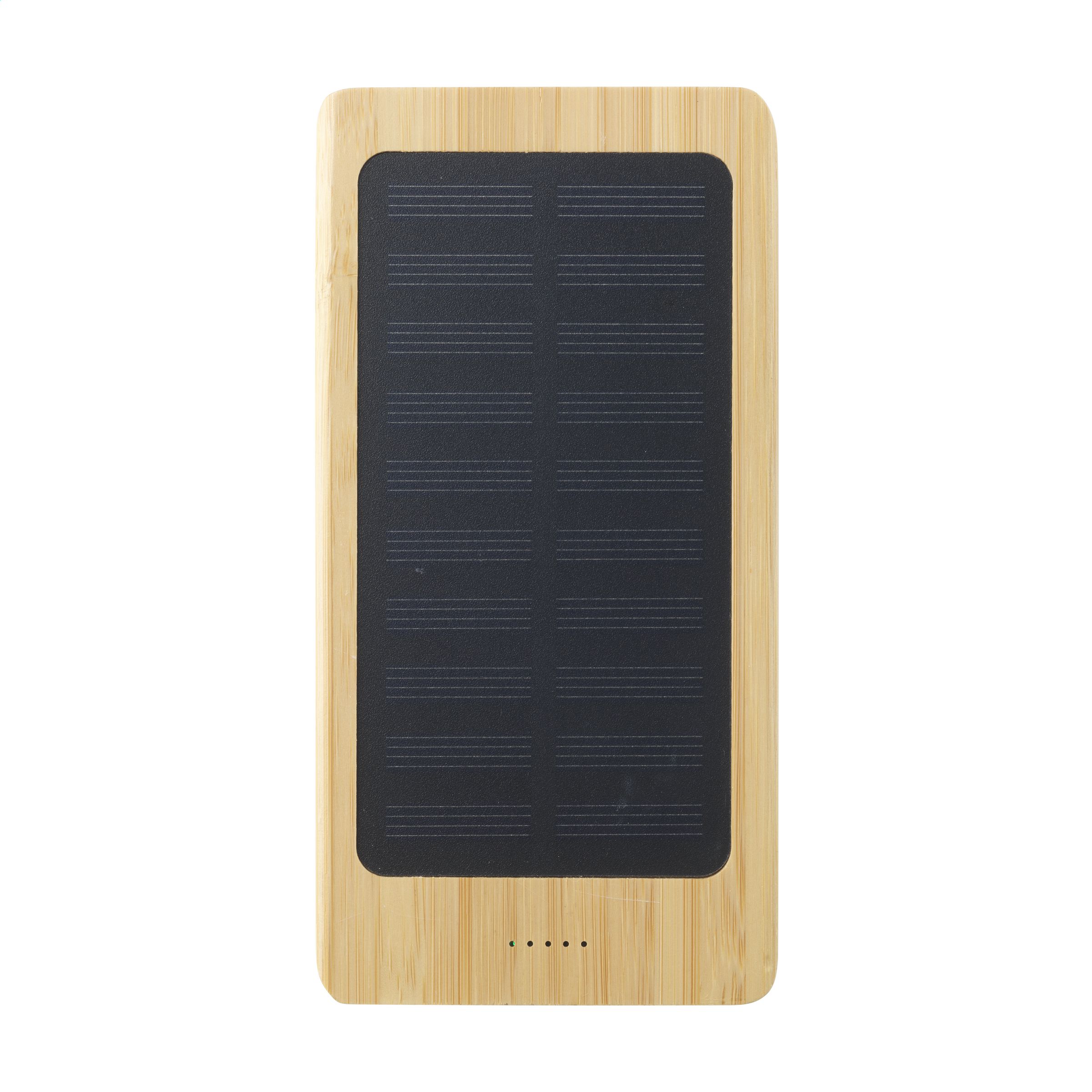 Leistungsstarkes Notladegerät mit hoher Ladekapazitätaus und drahtloses Ladegerät aus natürlichem FSC 100% zertifiziertem Bambus. Mit eingebauter Lithium-Polymer-Batterie (8000 mAh). Kompatibel mit allen Mobilgeräten, die QI Wireless Charging unterstützen (neueste Generationen von Android und iPhone). Kann mit Solarenergie oder Netzstrom (über USB-Anschluss) aufgeladen werden. Eingang: 5V/2A. Ausgang: 5V/2A. Mit Kontrollleuchten. Inklusive USB-C-Ladekabel und Gebrauchsanweisung. Pro Stück in einer Verpackung.