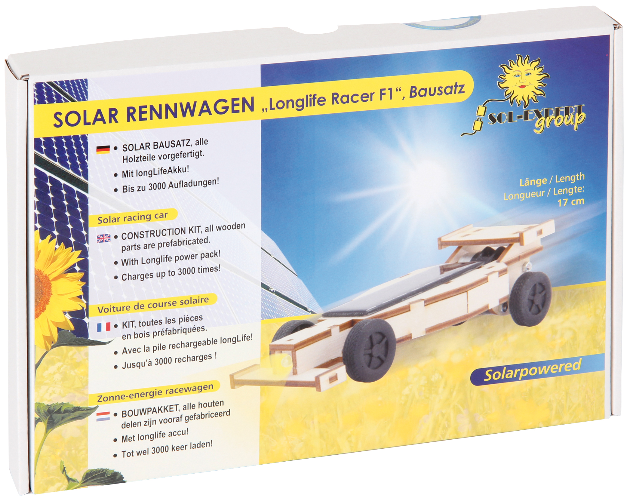 Ein schöner Bausatz mit großartigem Effekt. Sobald genügend Licht auf die Solarzelle trifft, läd sich der Akku, legt man den Schalter um fährt der Rennwagen und sein Scheinwerfer leuchtet. Ein echtes Vergnügen für Groß und Klein! Läuft ohne Batterien, vollkommen umweltfreundlich. Länge: 18 cm. (Hinweise zur Batterieentsorgung liegen der Warensendung bei, oder vorab abzurufen, unter: http://1111ideen. de / content/25-Batterie-Hinweis)