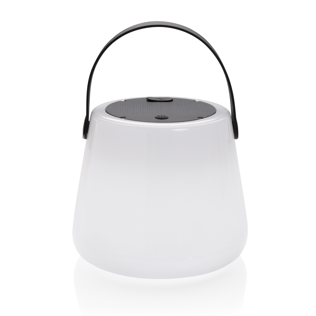 LED-Solartischleuchte aus RCS-zertifiziert recyceltem ABS. Gesamter recycelter Inhalt: 71% basierend auf dem Gesamtgewicht des Artikels. Die RCS-Zertifizierung gewährleistet eine vollständig zertifizierte Lieferkette für die recycelten Materialien. Die Taschenlampe verwendet eine wiederaufladbare A-Grade Lithiumbatterie mit 1200 mAh, so dass die Batterien nicht ausgetauscht werden müssen. Einfach über die USB-Buchse und den integrierten Type-C-Anschluss aufladen. Inklusive 80cm langem Ladekabel. Aufladezeit über Kabel: ca. 3 Stunden. 10 Stunden in hellem Sonnenlicht ergeben bis zu 3-4 Stunden Betriebszeit. Betriebszeit bei voller Ladung: ca. 20 Stunden. IPX 4 wasserdicht.