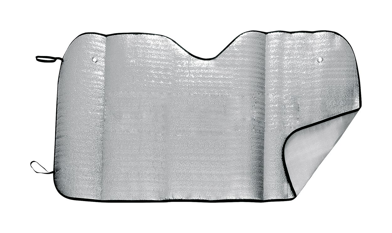 Sonnenblende für Frontscheibe mit Aluminiumbeschichtung (180 g, 1,8 mm stark) und Saugnäpfen.