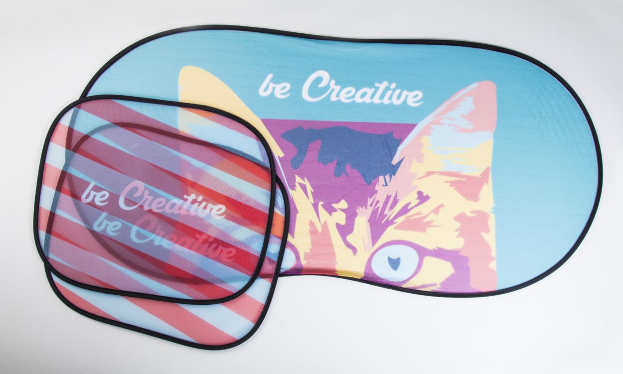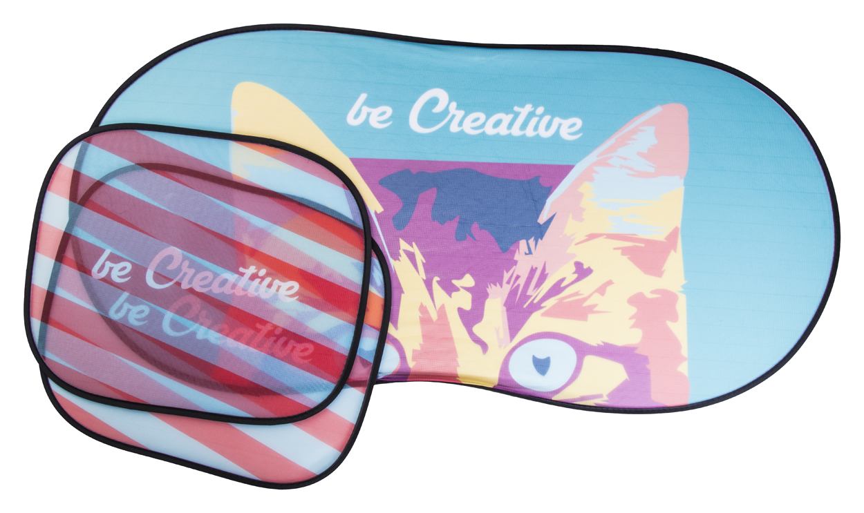 Faltbare Sonnenblenden (2 Stk.) für Seitenscheiben mit Sublimationsdruck, inkl. Saugnäpfen.