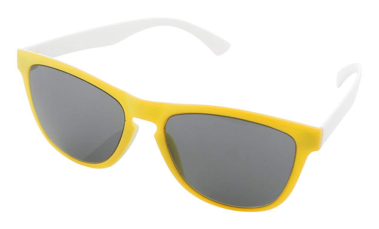Beschreibung: Sonnenbrille aus Kunststoff mit UV 400 Schutz. Die Farbe der Bügel und des Rahmens kann individuell kombiniert werden. Mindestmenge: 50 Stk.