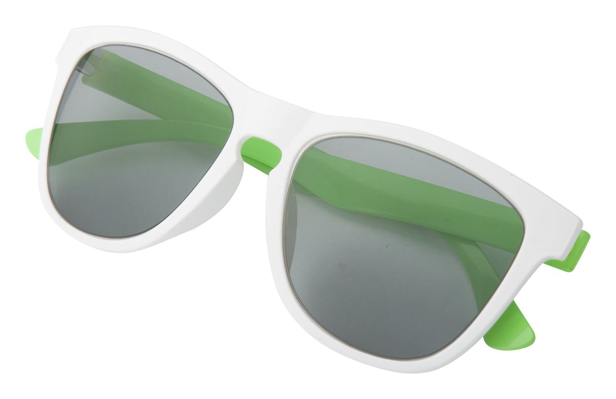 Beschreibung: Sonnenbrille aus Kunststoff mit UV 400 Schutz. Die Farbe der Bügel und des Rahmens kann individuell kombiniert werden. Mindestmenge: 50 Stk.