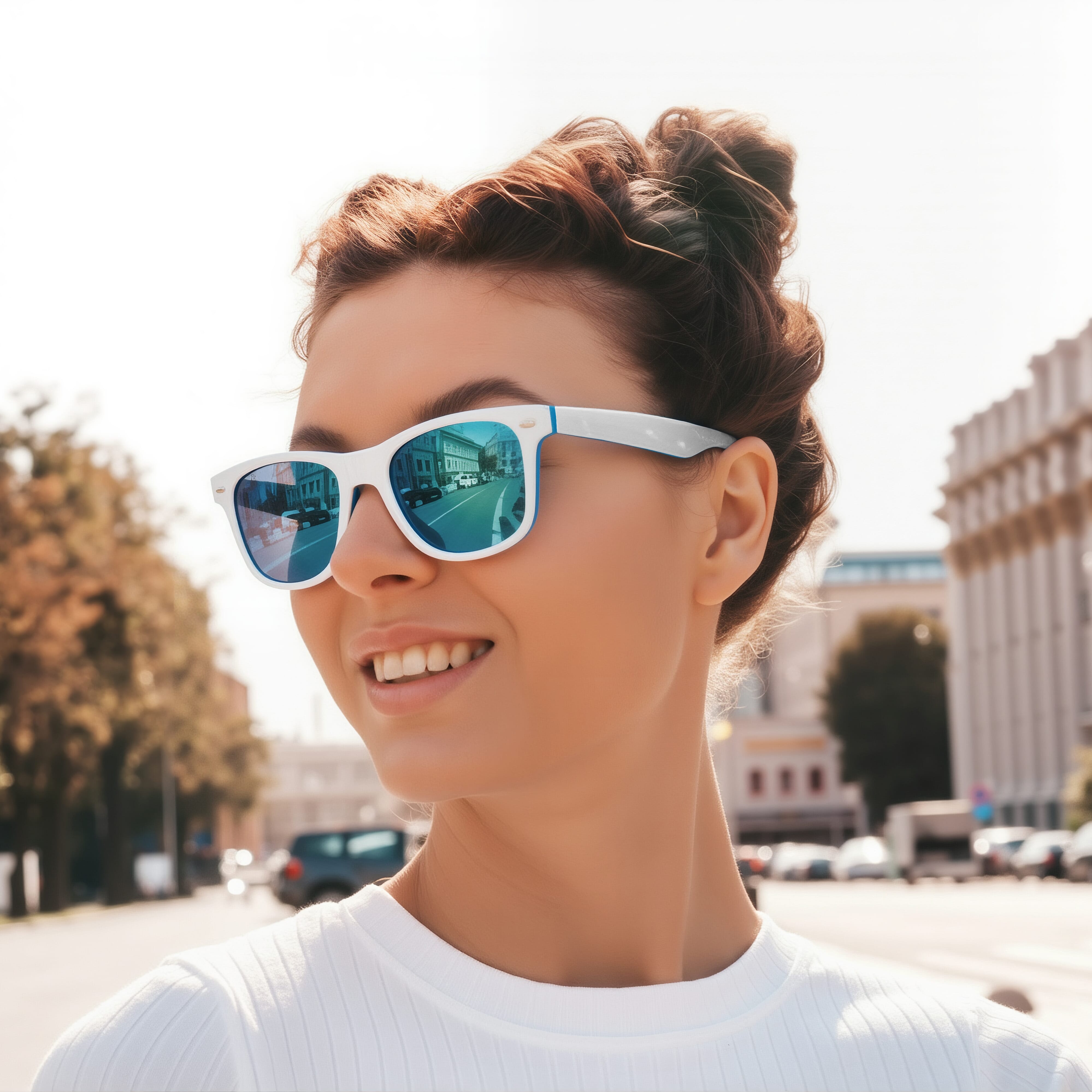 Trendige Sonnenbrille mit Rahmen in zweifarbiger Farbgebung. UV400-Filter.