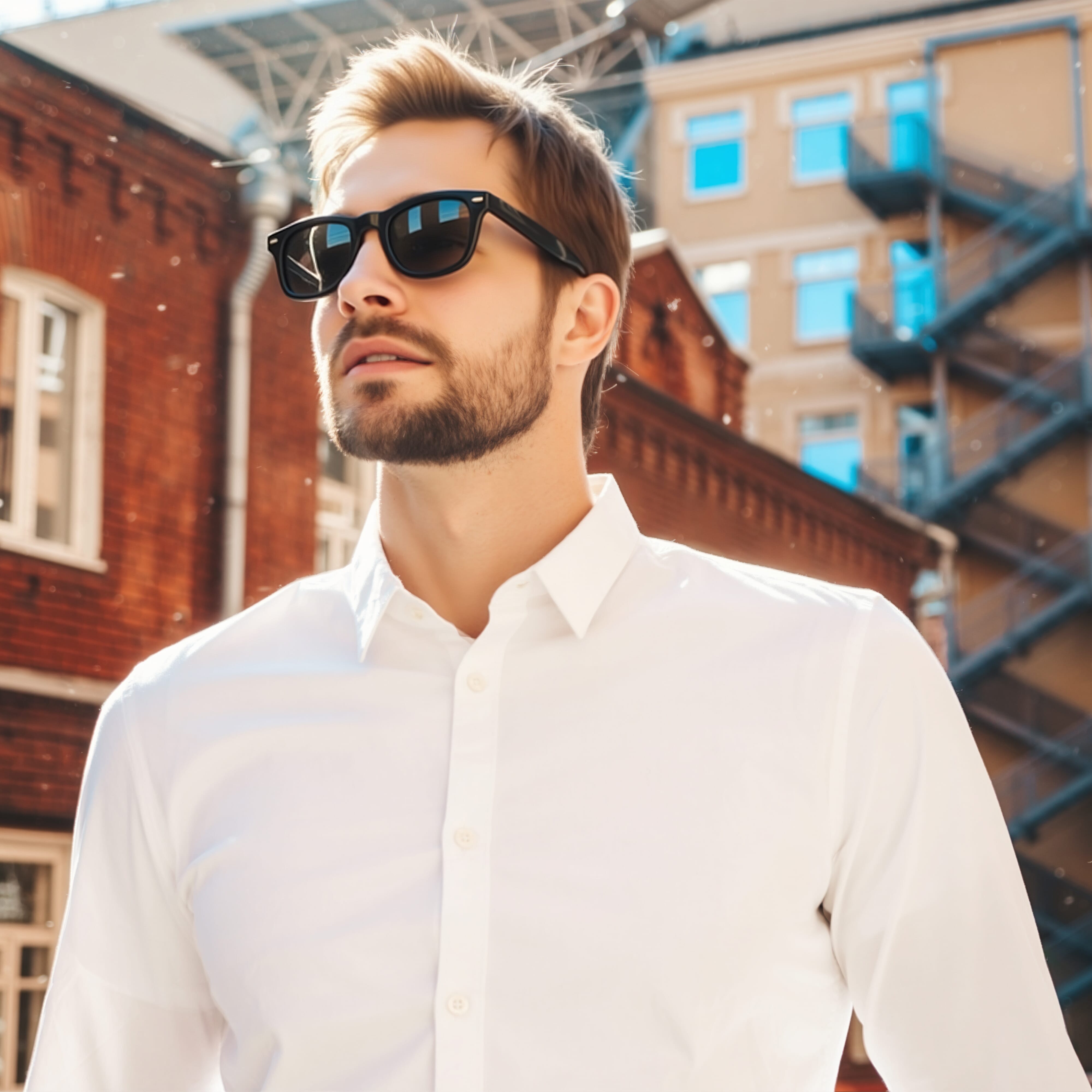 Zeitgenössische Sonnenbrille mit UV400-Filter, für einen modischen Look. Druck auf einem oder beiden Bügeln möglich.