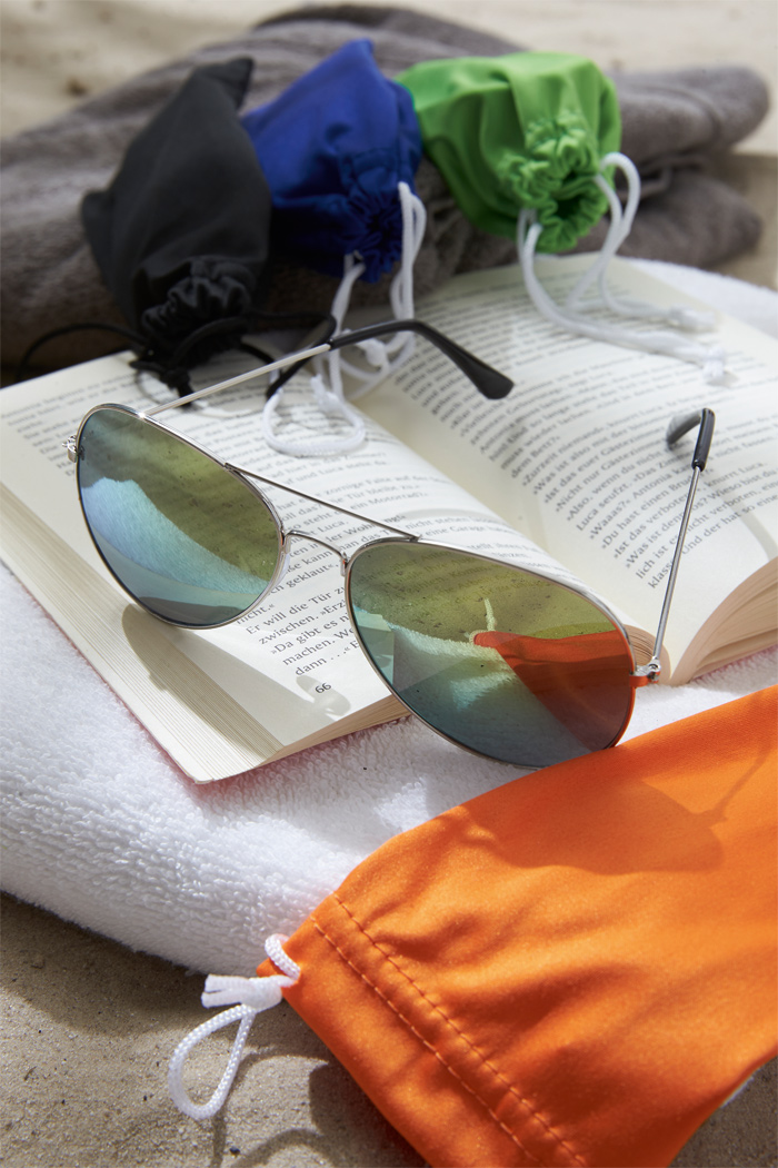 Sonnenbrille NEW STYLE, mit Tasche: mit dunkler Glastönung, UV 400 zertifiziert. Auf der Tasche kommt Ihr Werbeaufdruck perfekt zur Geltung