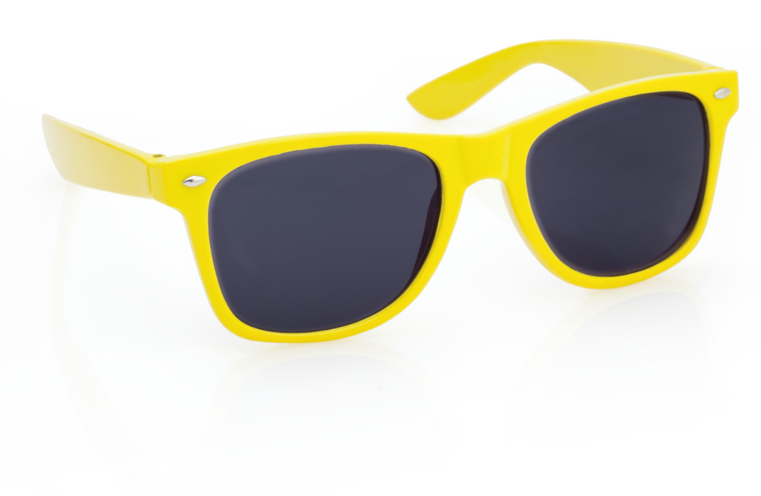 Sonnenbrille mit UV400-Schutz. Stabiler Rahmen mit schlankem Design und glänzender Oberfläche, in lebhaften und bunten Farben erhältlich. Die Gläser sind schwarz und sorgen so für Stil. Präsentiert in einem individuellen, recycelten Beutel.