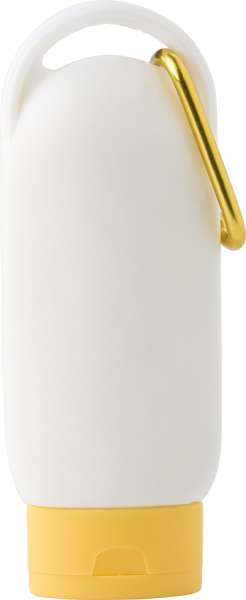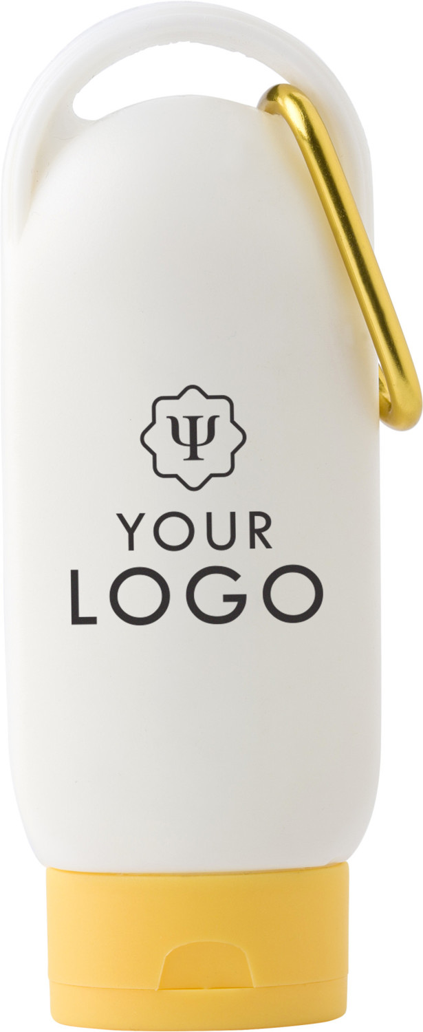Sonnenschutz-Creme aus Kunststoff, mit Karabinerhaken aus Metall, wasserabweisend, Lichtschutzfaktor 30, Inhalt 60 ml.