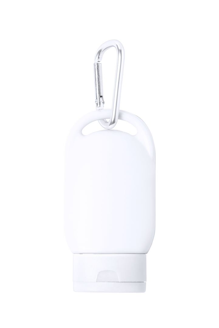 Sonnenschutzcreme Faktor 30. Präsentiert in einer praktischen 30ml-Flasche und mattierter Oberfläche. In vielen Farben erhältlich, mit passendem Transportkarabiner.