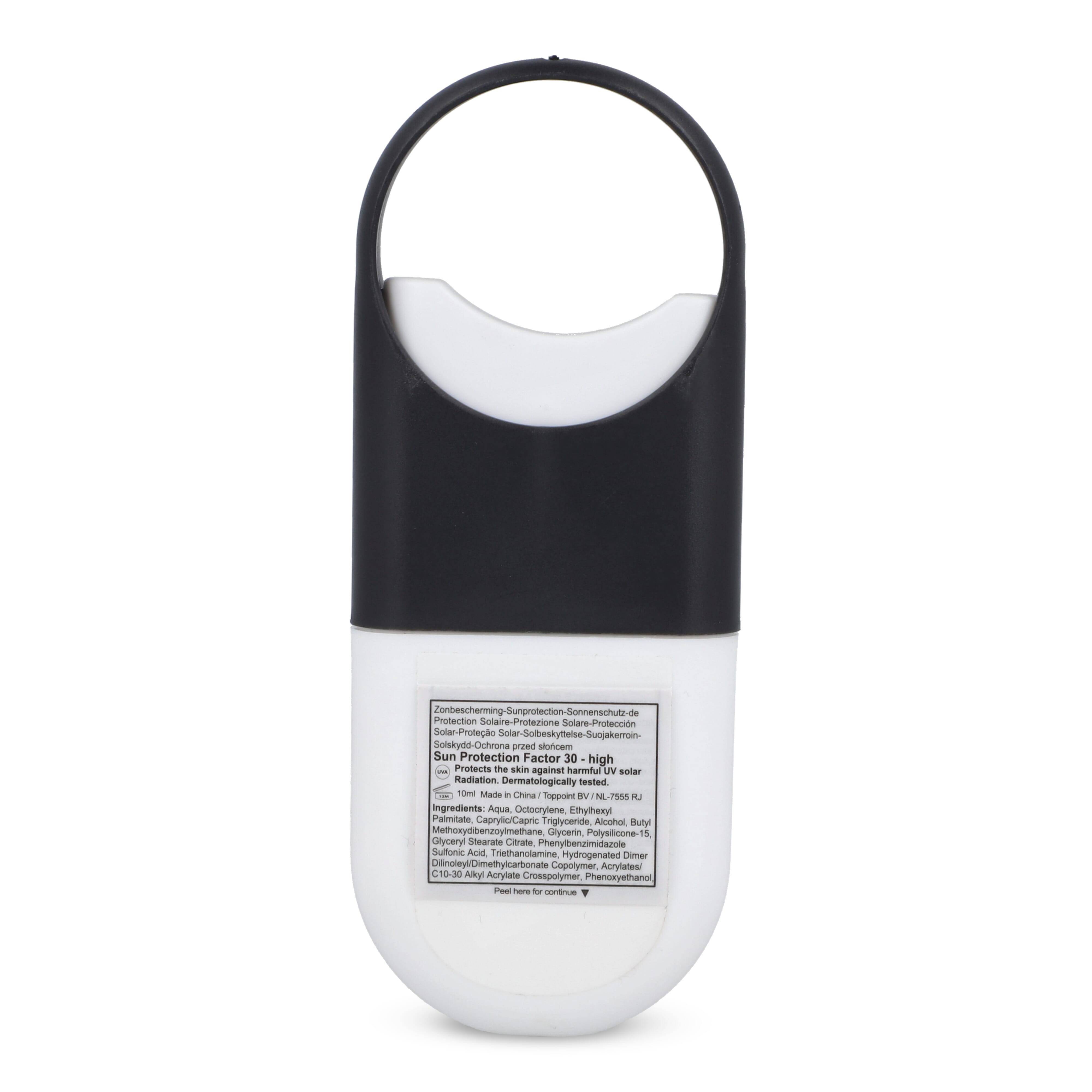 Sonnenschutzspray (SFP30) in einem raffinierten Zerstäuber, zum Schutz Ihrer Haut in der Sonne. Die große Druckfläche ist ideal für einen Digitaldruck.