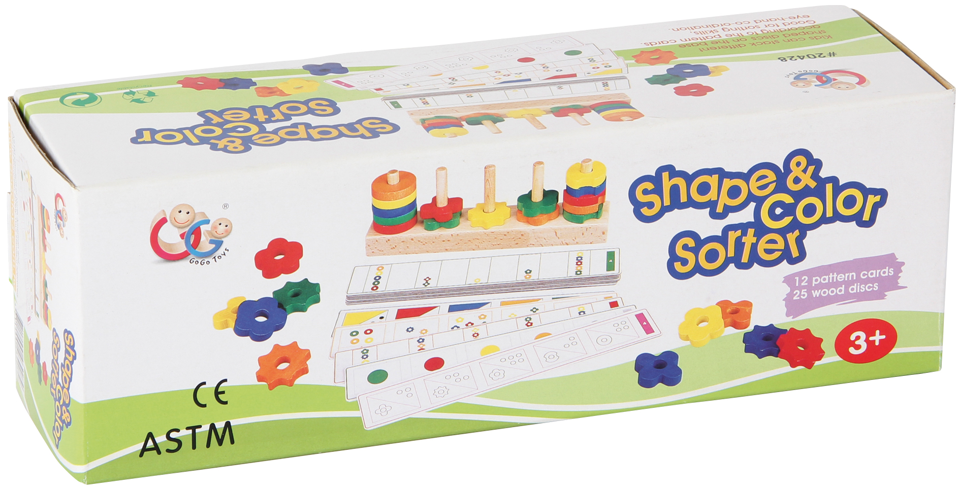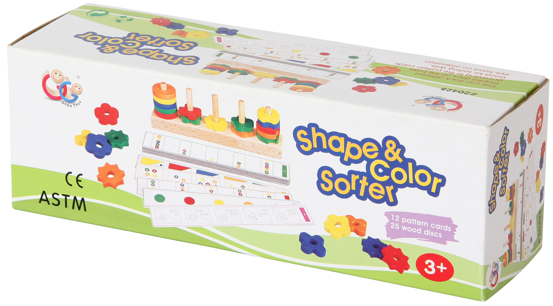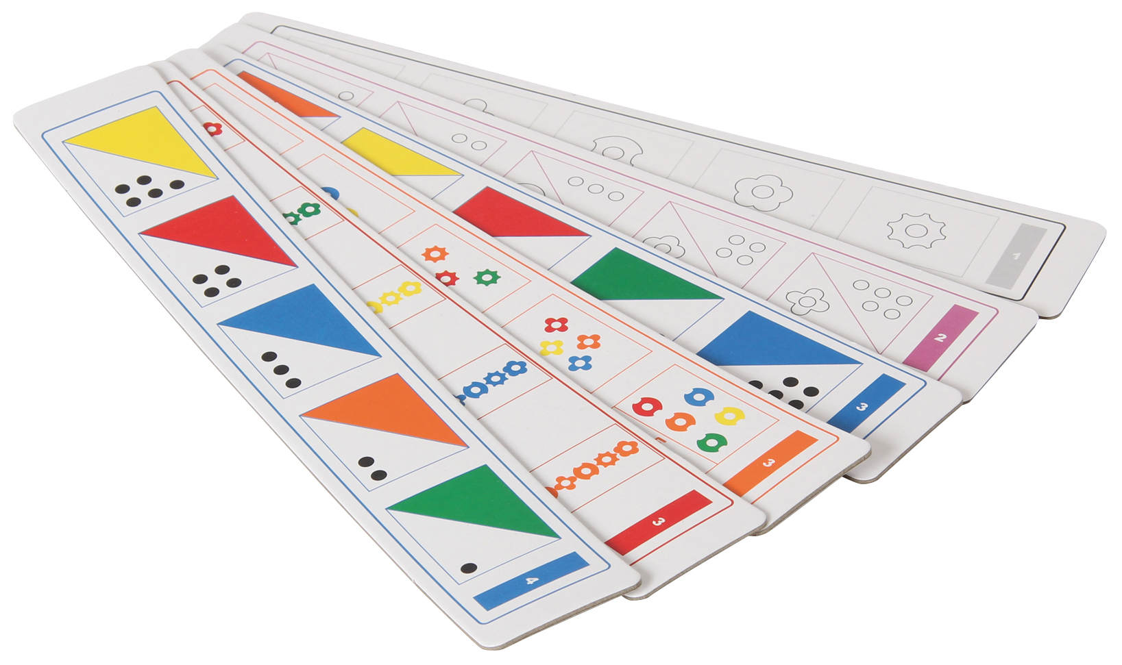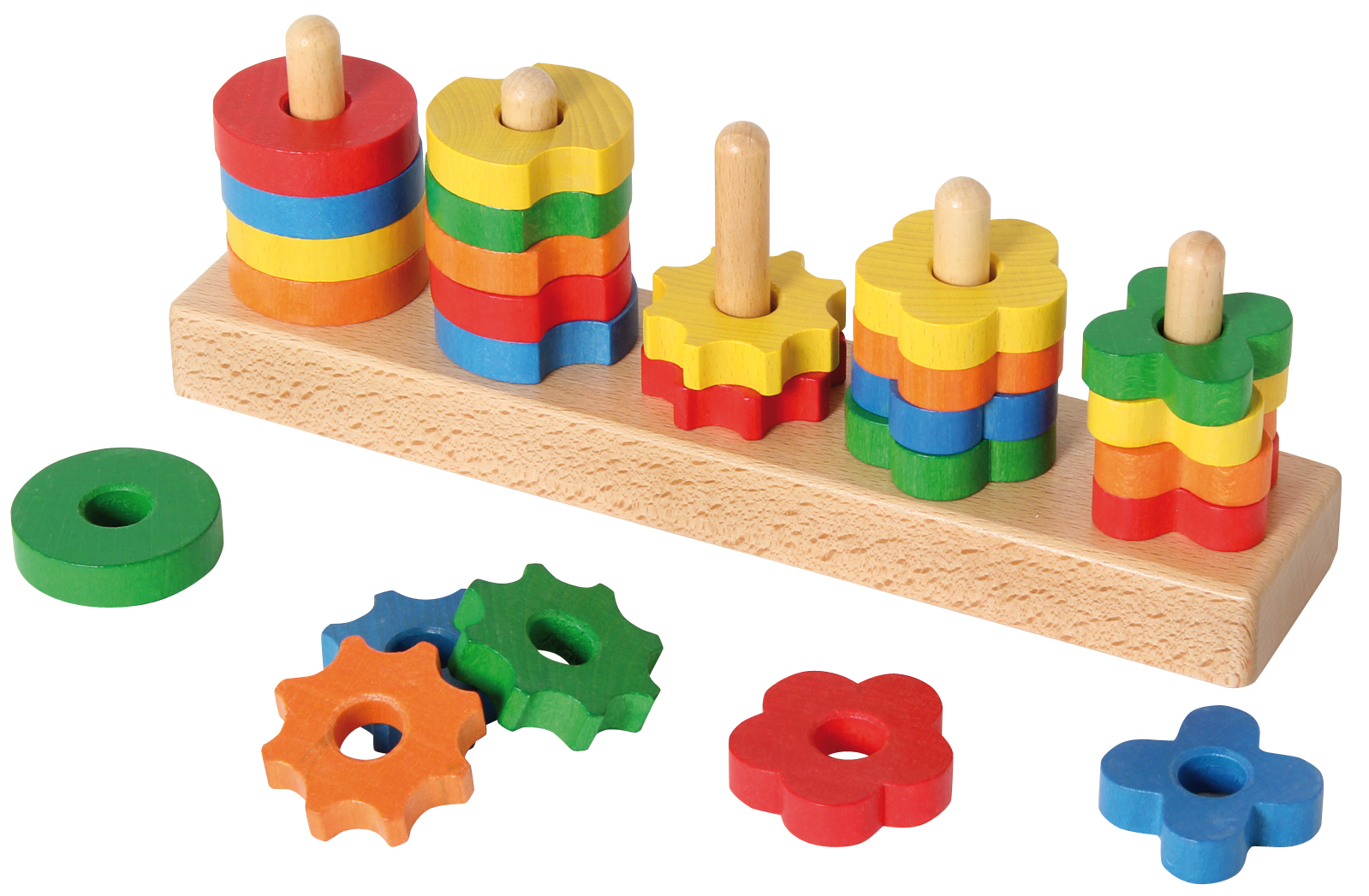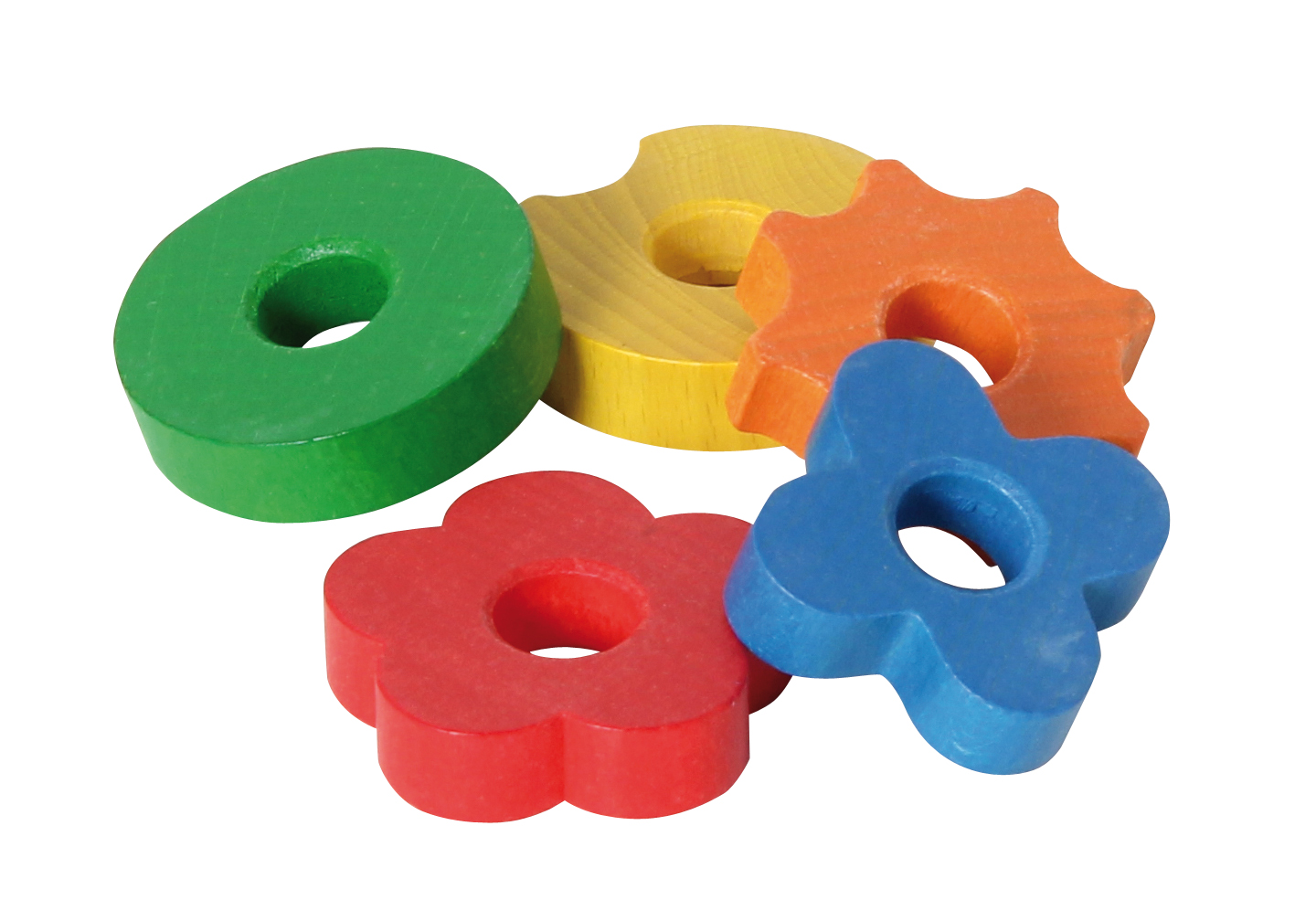 Inhalt: 25 Holzscheiben (D: 5 cm) in fünf Farben und Formen, ein Spielbrett (28 x 6 x 10 cm) und zwölf Motivvorlagenkarten. Kinder ab 3 legen mit den Holzscheiben die Motive der Vorlagenkarten nach. Dabei lernen sie sich zu konzentrieren, trainieren ihre Feinmotorik und die Hand-Auge-Koordination.