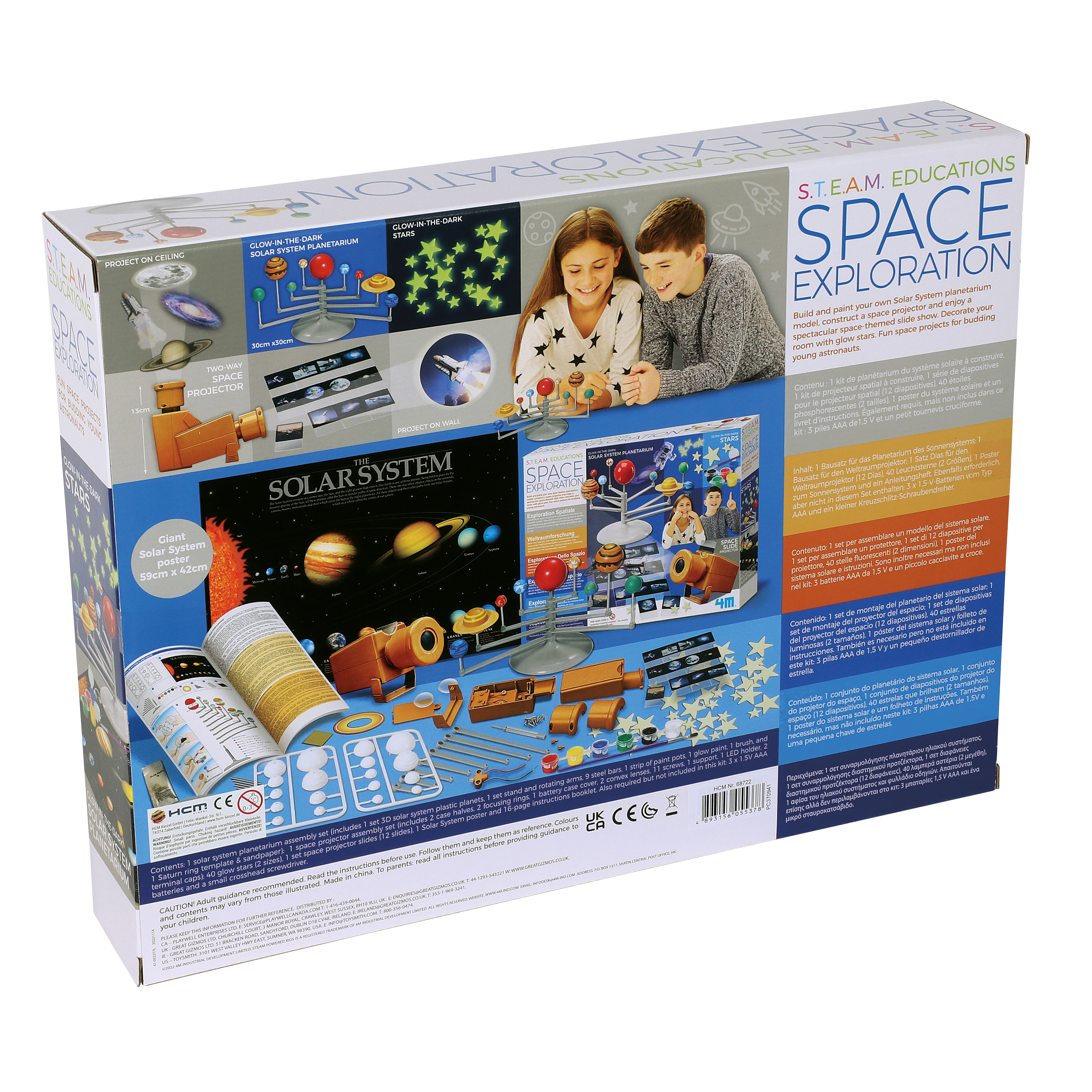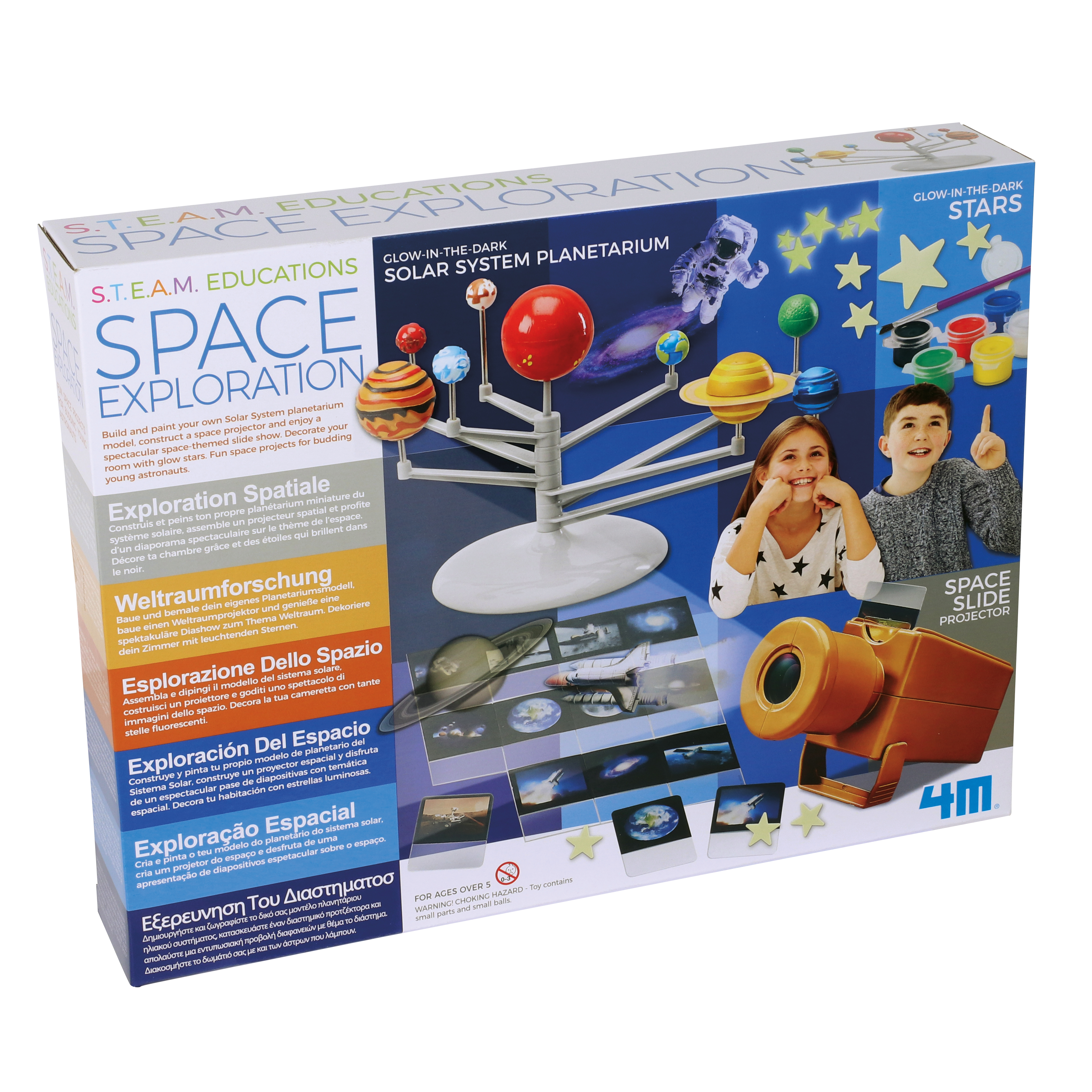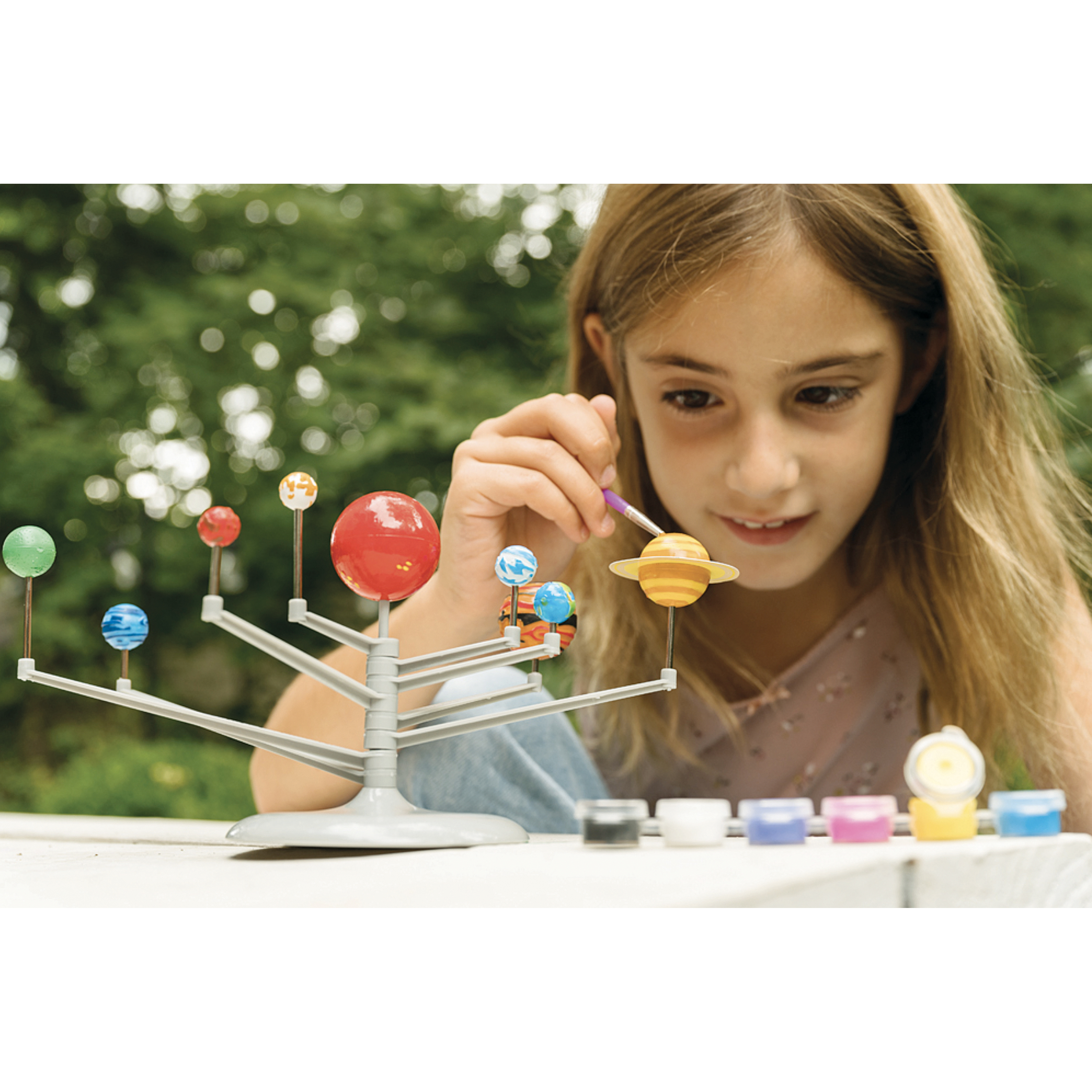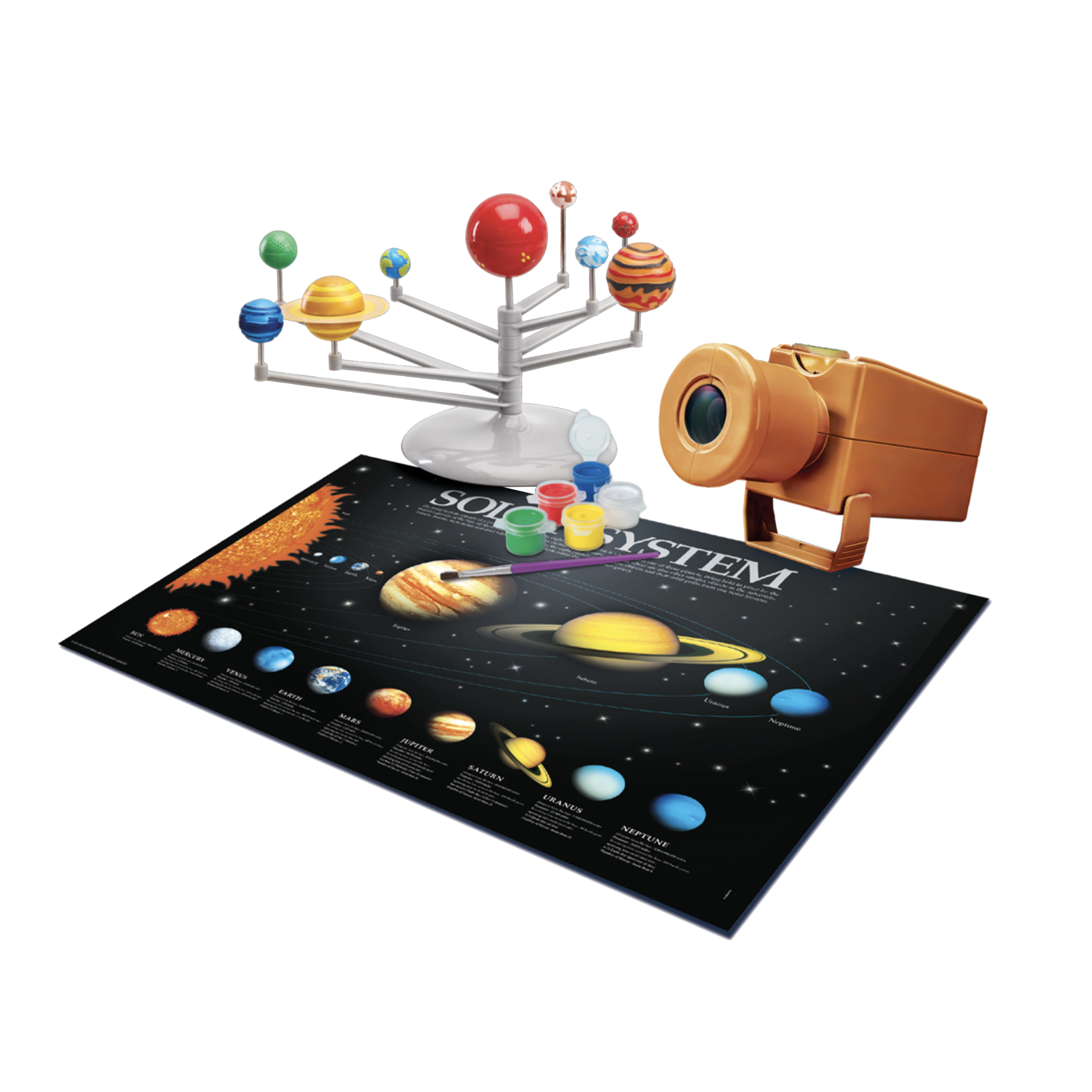 Baue und bemale dein eigenes Planetariumsmodell des Sonnensystems, baue einen Weltraumprojektor und genieße eine spektakuläre Diashow zum Thema Weltraum. Dekoriere dein Zimmer mit einem riesigen Sonnensystemposter und leuchtenden Sternen. Dieser Wissenschaftsbaukasten ist ideal für angehende junge Astronomen. Inhalt: 3-dimensionale Sonnensystem-Plastikplaneten, Sonnensystem-Poster, 1 Fuß mit rotierenden Armen, Pinsel, Farbstreifen, 1 Saturnring-Schablone, 9 Stahlstäbe, 1 Leuchtfarbe, 1 Schleifpapier.