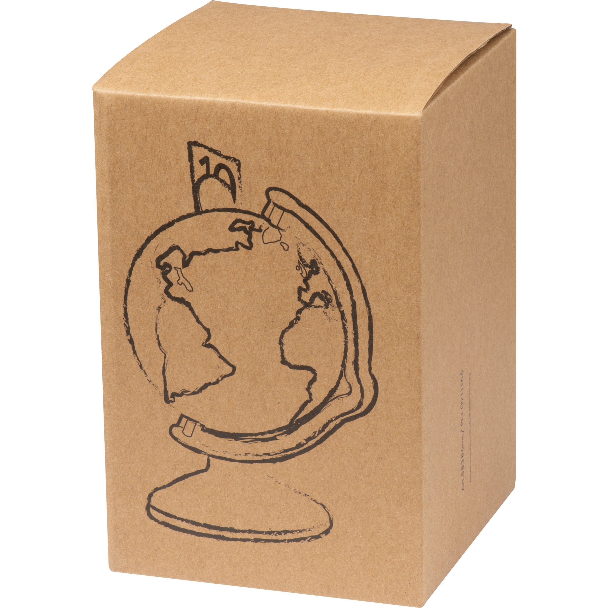 Spardose mit drehbarem Globus - Sparen und vom nächsten Urlaub träumen. Ihre Werbung drucken wir digital (mehrfarbig) auf ein Etikett, welches wir an geeigneter Position der Einzelverpackung* aufkleben.