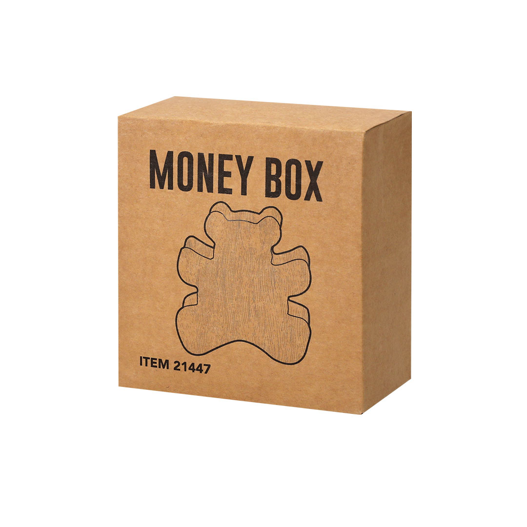 Sparen aus Naturholz mit Tierdesign. Enthält Farbstifte, die es ermöglichen, das Design jeder Sparkasse zu personalisieren. Enthält ein praktisches unteres Loch für einen einfachen Zugang zu den Ersparnissen, ohne sie zerbrechen zu müssen.