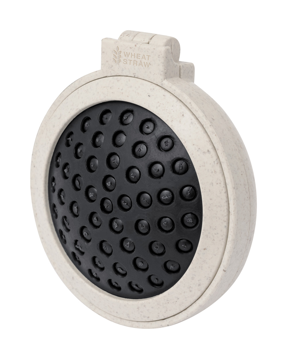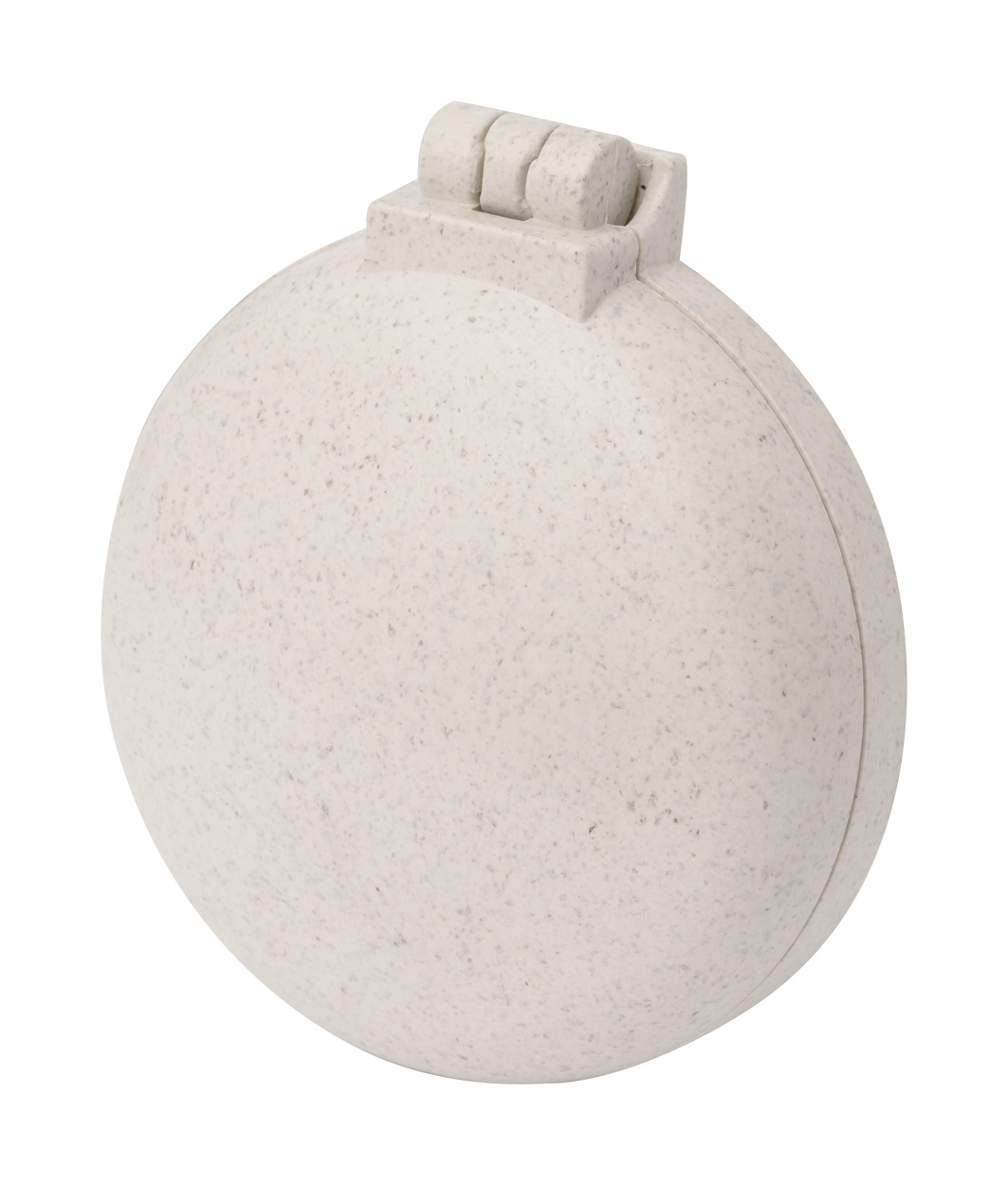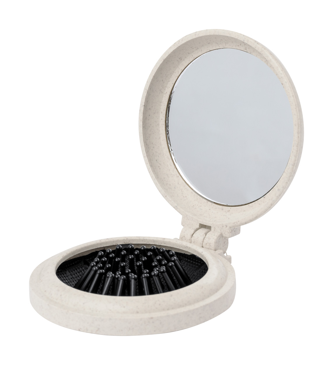Faltbare Haarbürste aus ökologischem Weizenstrohkunststoff mit Taschenspiegel.