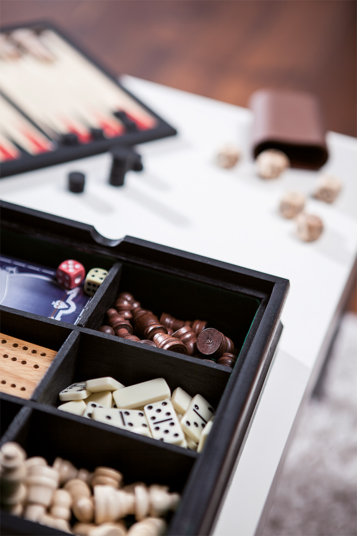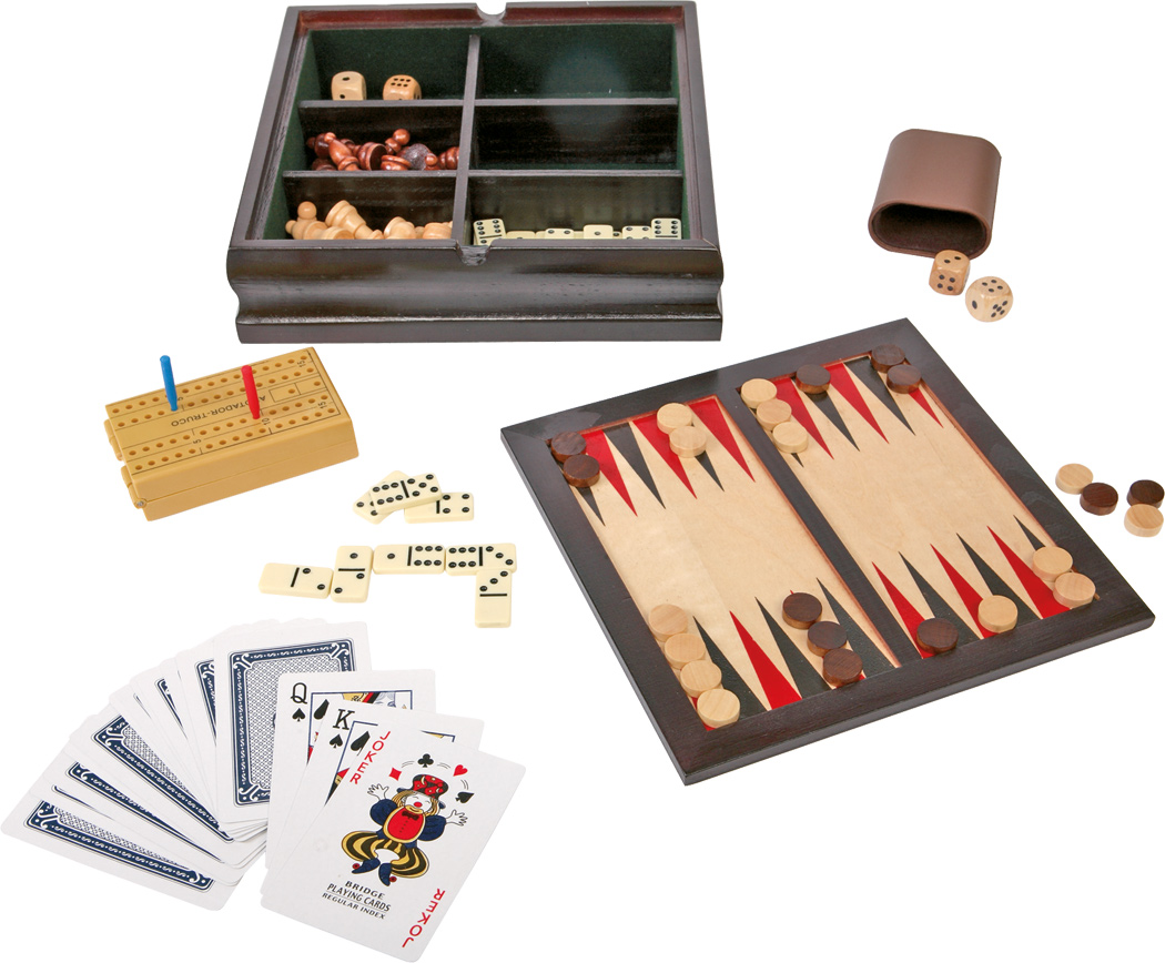 Spielesammlung FAMILY-FUN: mit Schach, Backgammon, Domino, Karten- und Würfelspiel, im Holzkasten