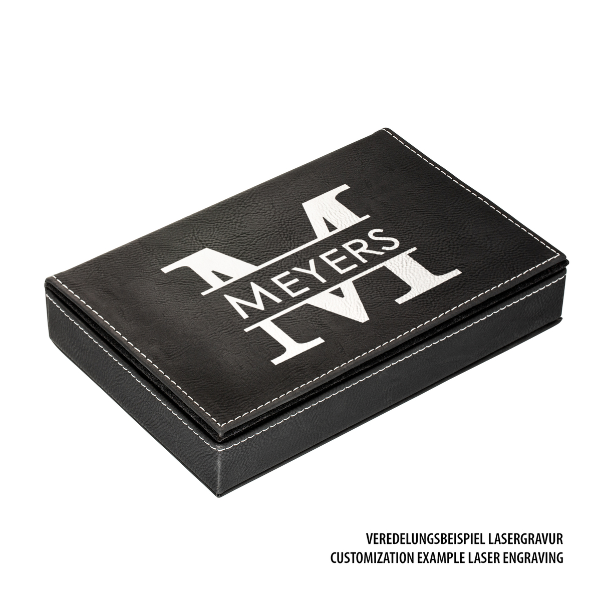 Halten Sie alle Trümpfe in der Hand und setzen Sie bei Ihrer Werbung auf dieses klassische Spielkartenset in schöner Box mit großer Veredelungsfläche.110 Karten mit sechs Jokern (französisches Blatt) und ein Satz Würfel sind enthalten.