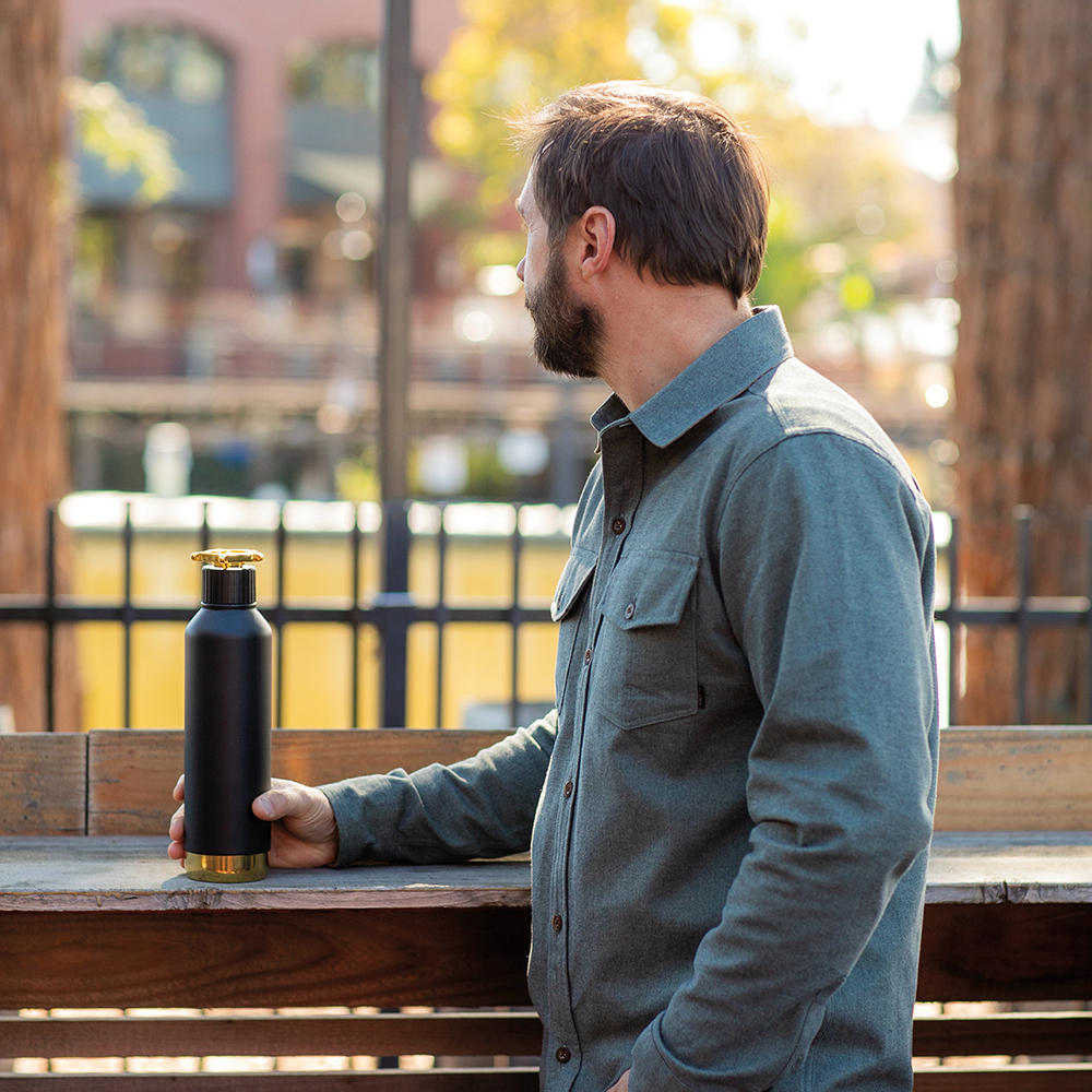 Spiglo ist eine einzigartige Trinkflasche aus recyceltem Edelstahl mit einem Fassungsvermögen von 780 ml (Netto: 750 ml). Der innovative, radförmige Deckel verleiht ihr eine besondere Note. Dank der doppelwandigen Isolierung bleiben Ihre Getränke bis zu 30 Stunden heiß und bis zu 72 Stunden kalt. Der auslaufsichere Verschluss schützt zuverlässig Ihre persönlichen Gegenstände. Verpackt in einer individuellen Kraftkartonbox.